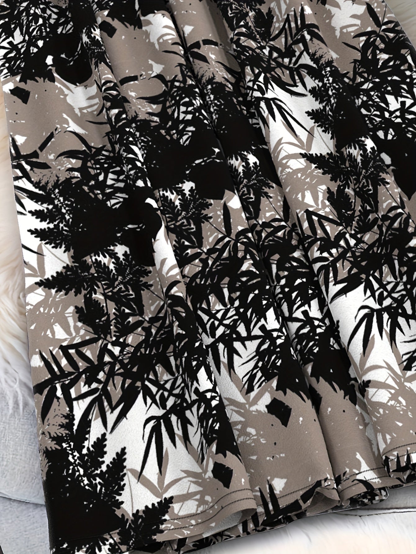 Plus Size Leaves Print Skirt Casual Elastic Waist Spring Summer Women's Clothing