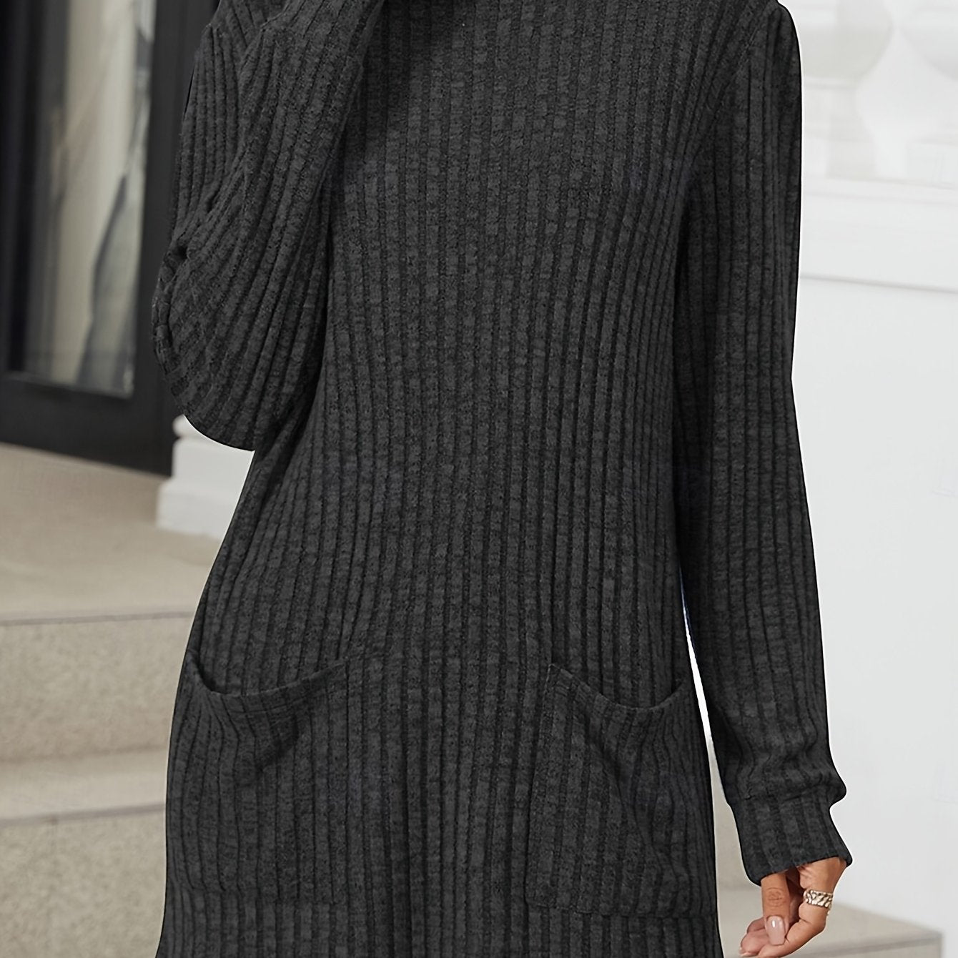 Plus Size Long Sleeve Top with Pockets Polyester Knit Solid Color