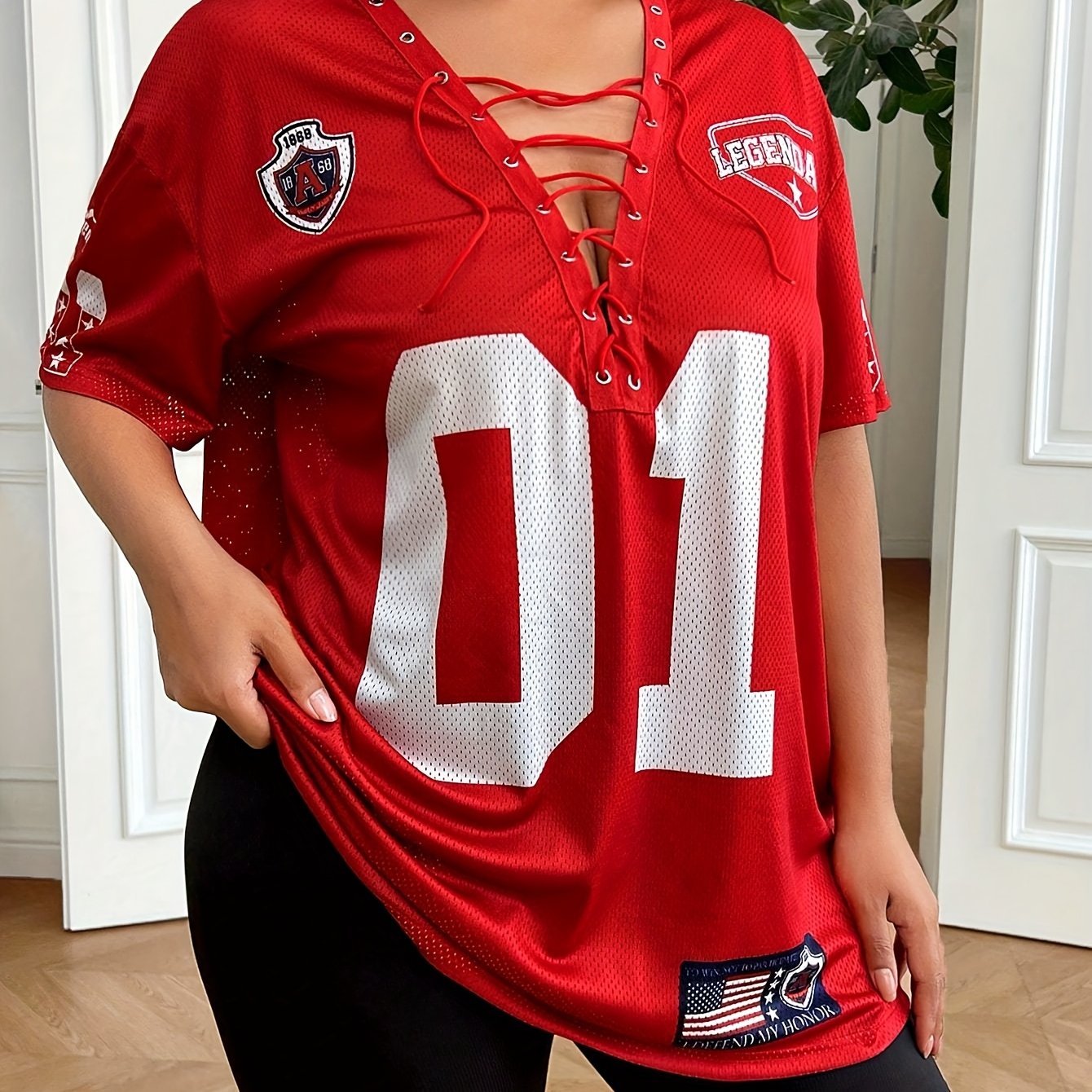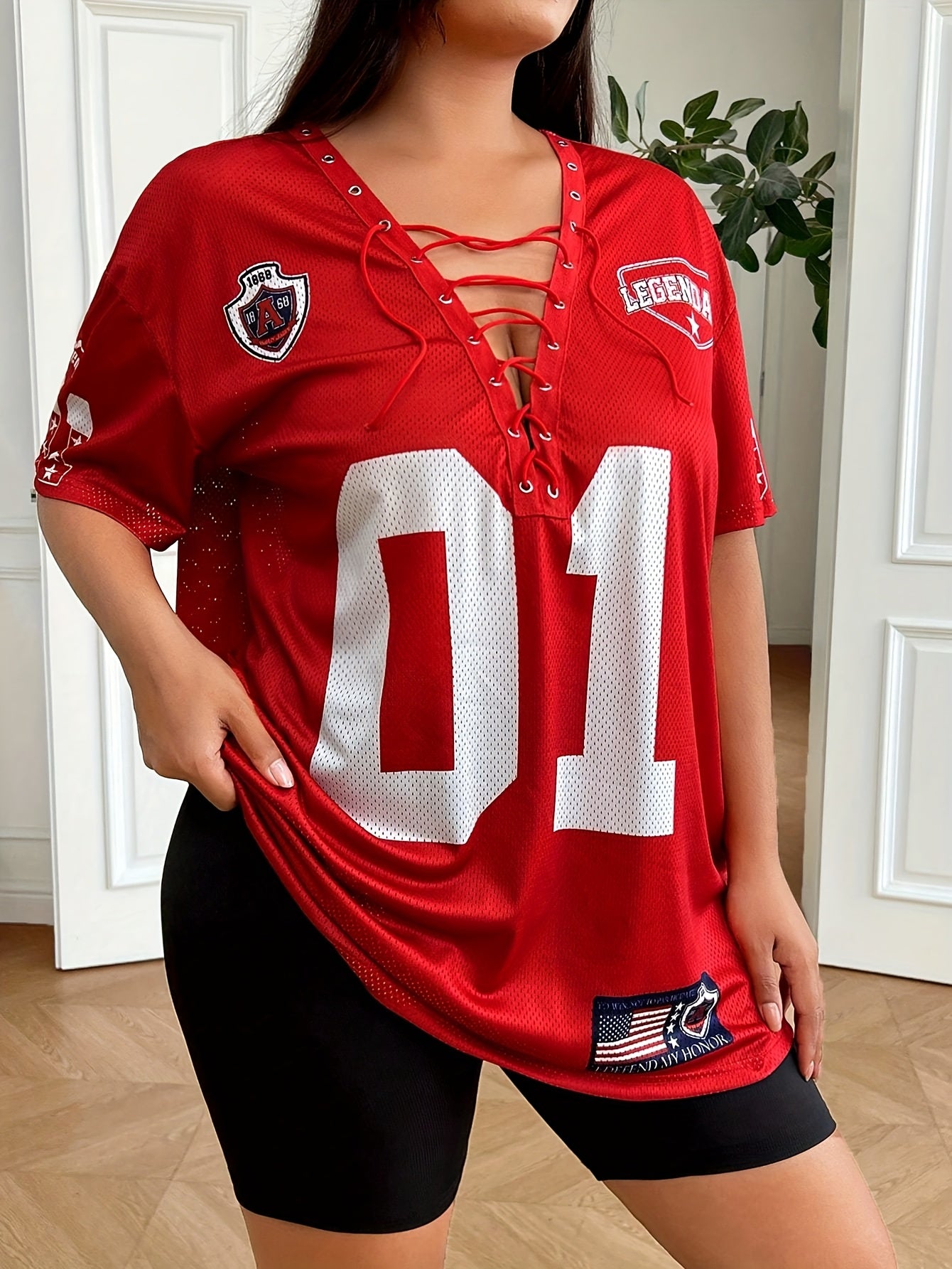 Plus Size Loose T-Shirt With Pattern and Elastic Band Men Women