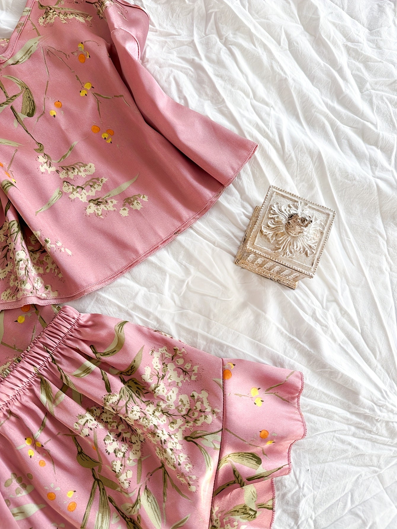 Plus Size Pajama Set Cherry Print Lightweight Polyester All-Season Short Set