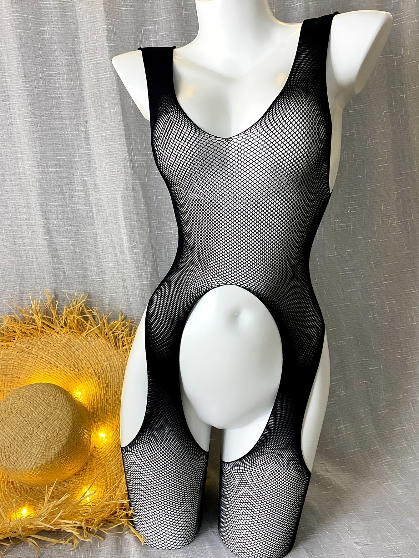 Plus Size Sleeveless Bodysuit with Hollow-Out Detail Stretch Nylon Sheer Women's