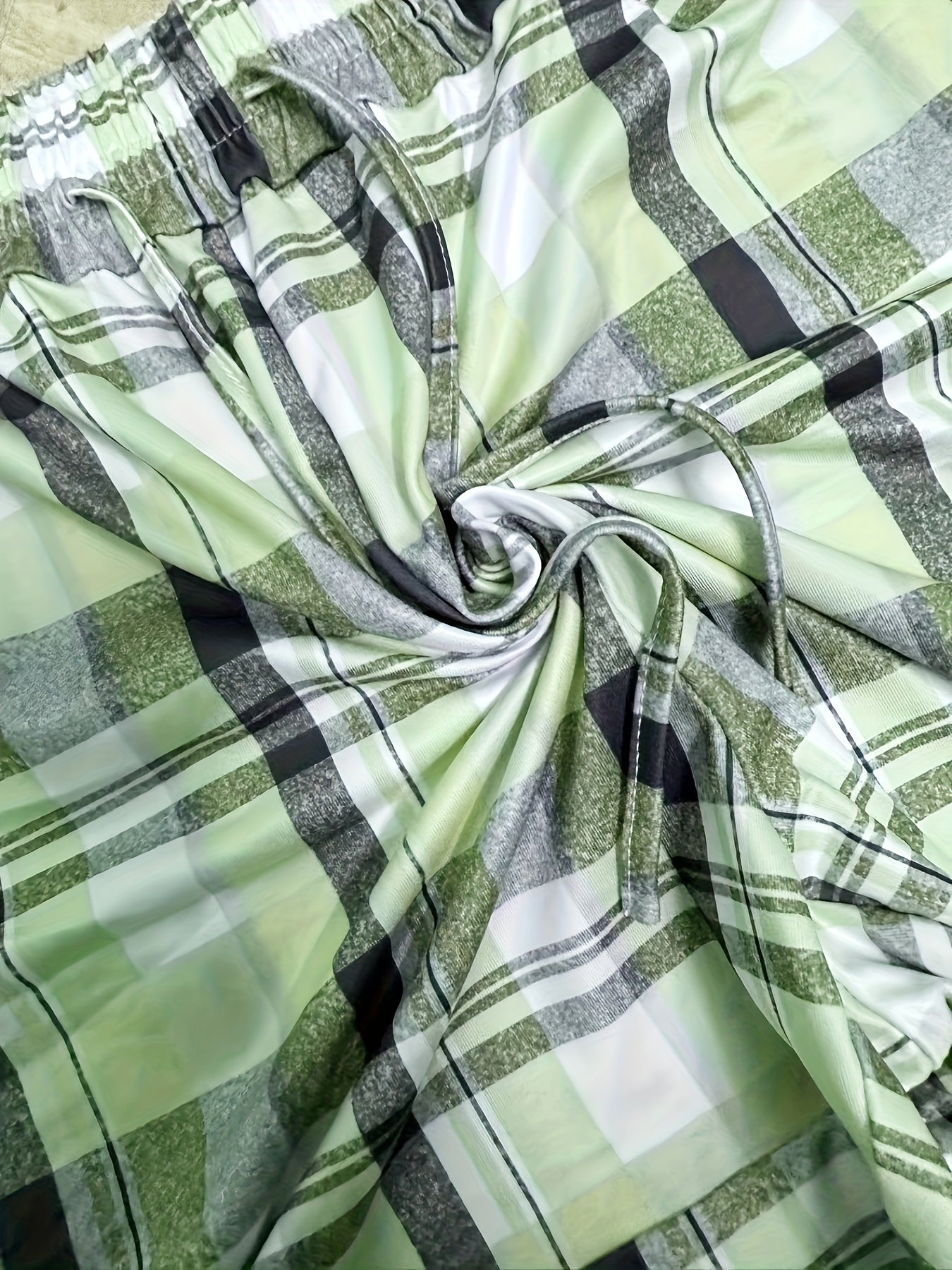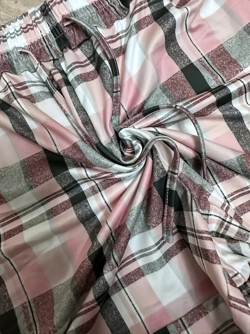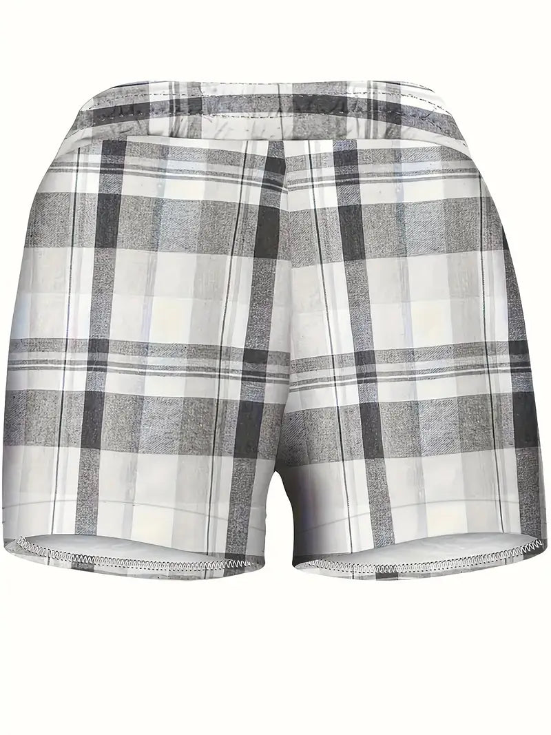 Plus Size Women Casual Summer Plaid Drawstring Shorts