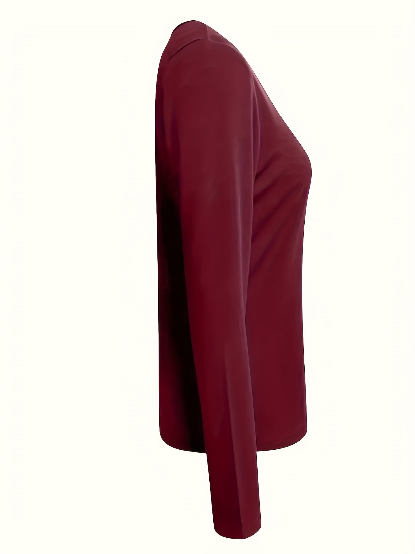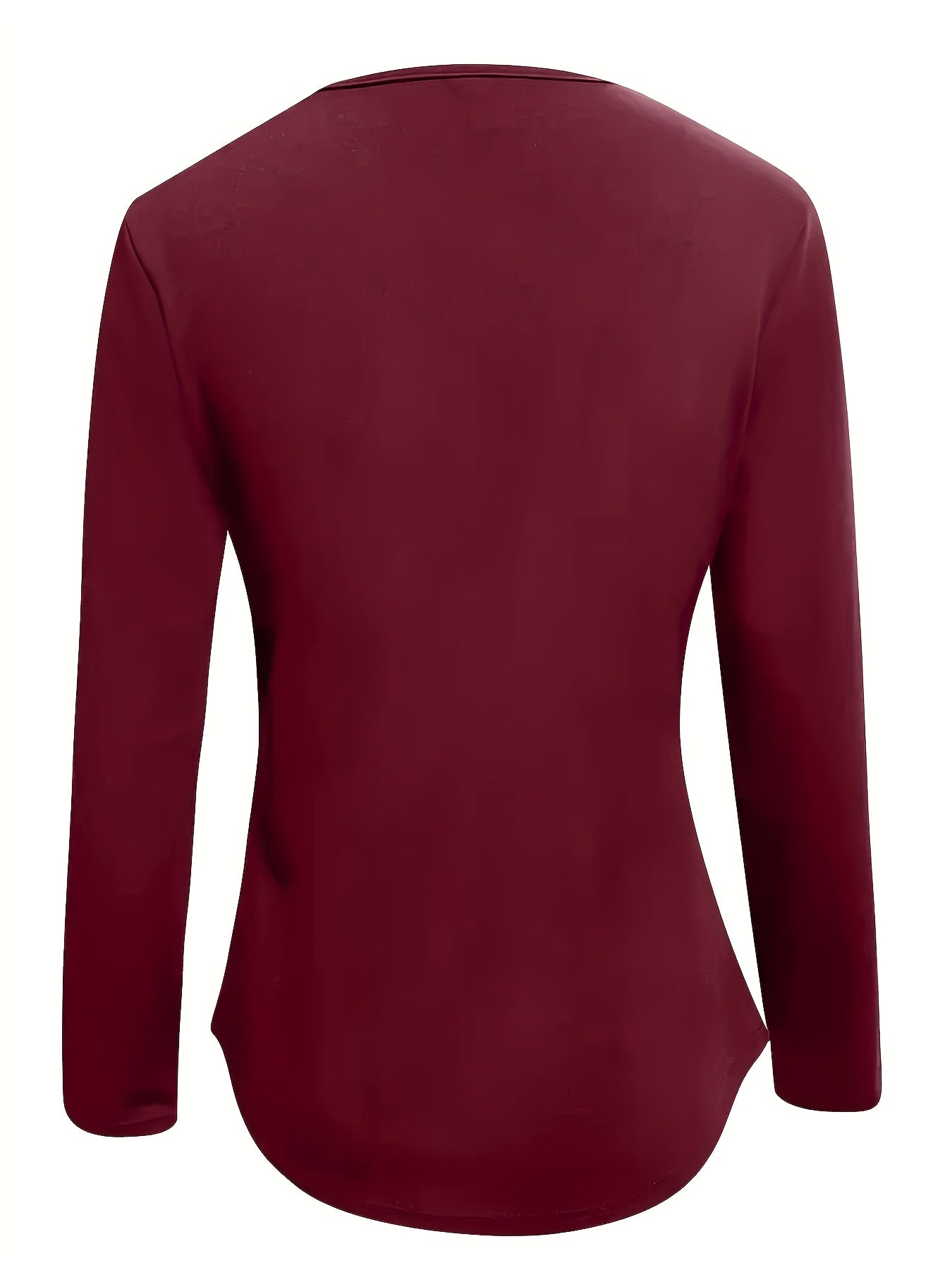Plus Size Women's Black Ruffled Long Sleeve Top Casual Stretchy Fall Winter