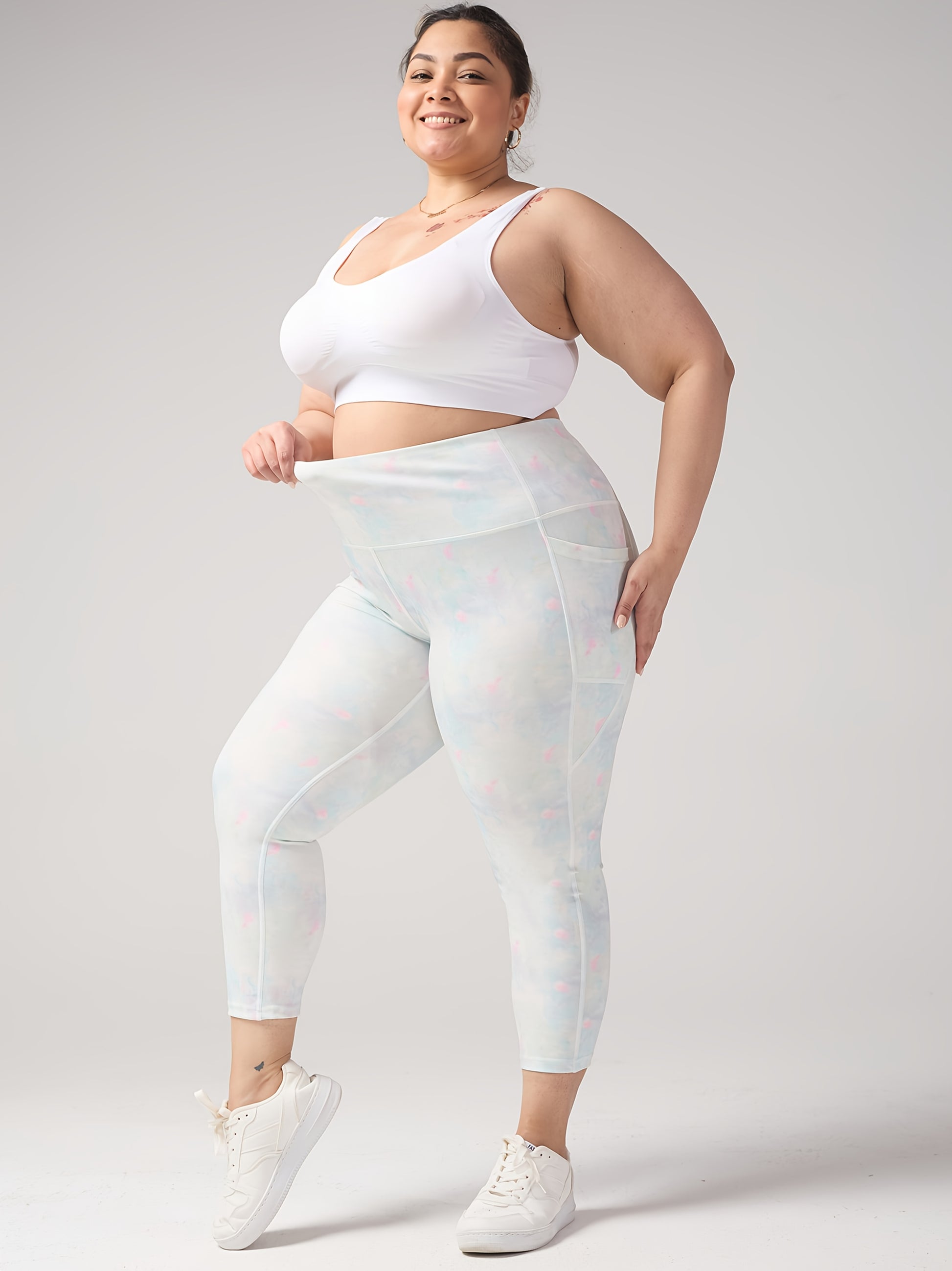 Plus Size Women's Cloud Pattern Capri Pants High-Waisted Tummy Control