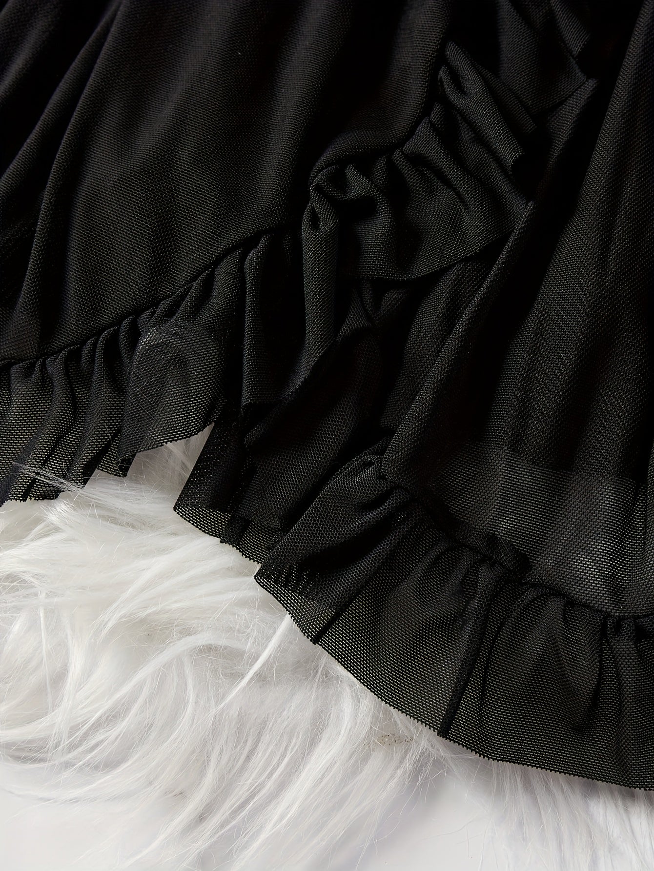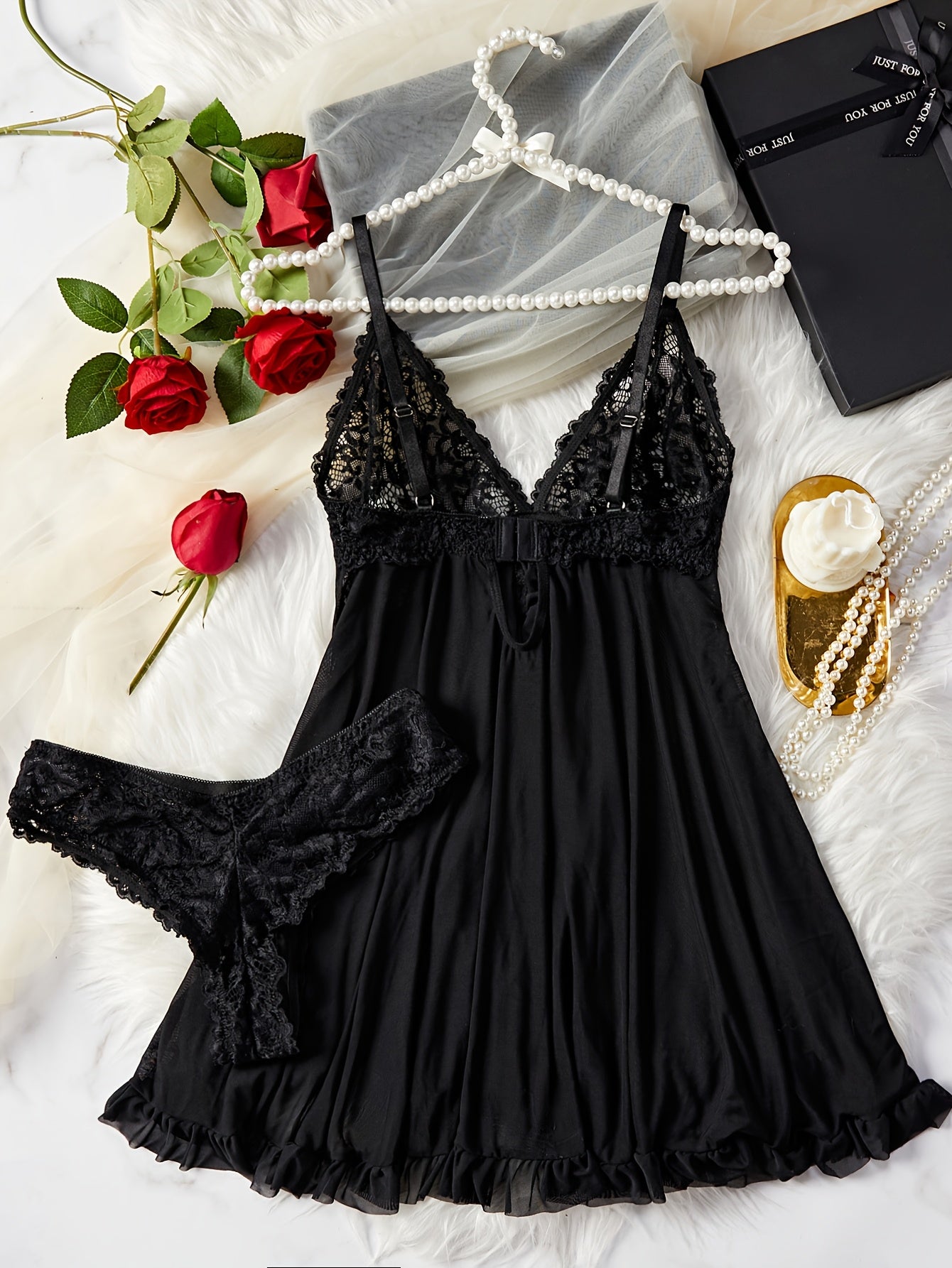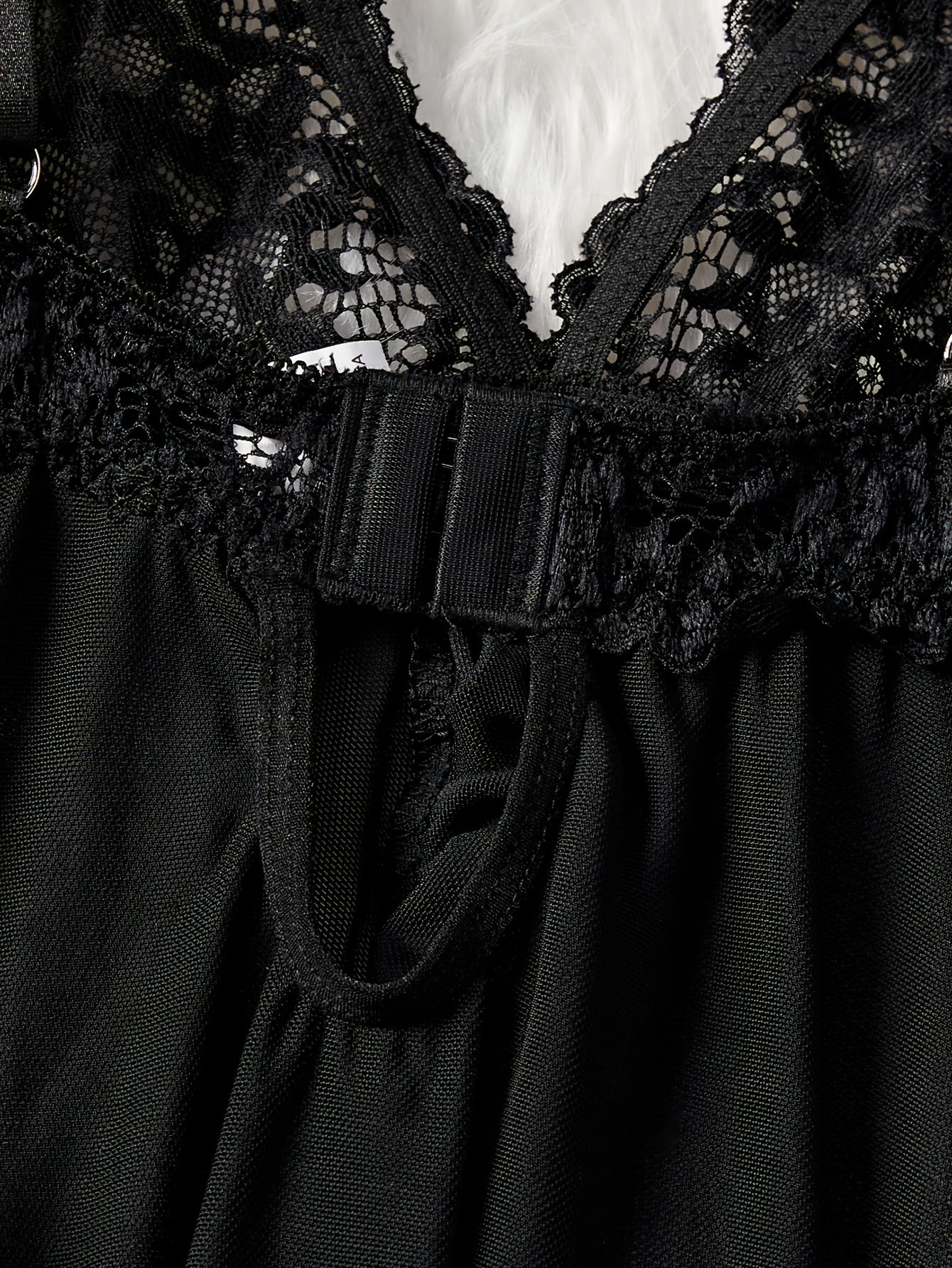 Plus Size Women's Floral Lace Ruffled Mesh Babydoll and Panty Lingerie Set