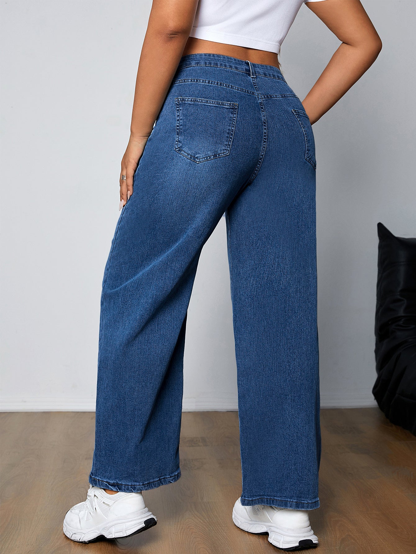 Plus Size Women's High-Rise Washed Blue Straight Leg Jeans with Button Fly and Medium Stretch