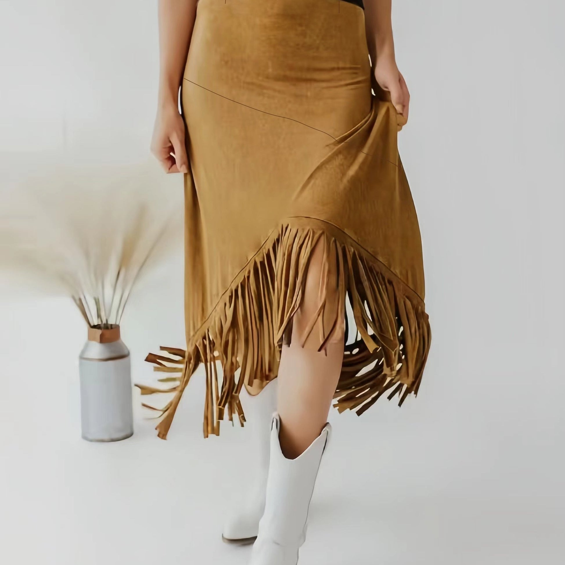 Plus Size Women's Irregular Tassel Skirt Casual Solid Bodycon Skirt for Spring Summer