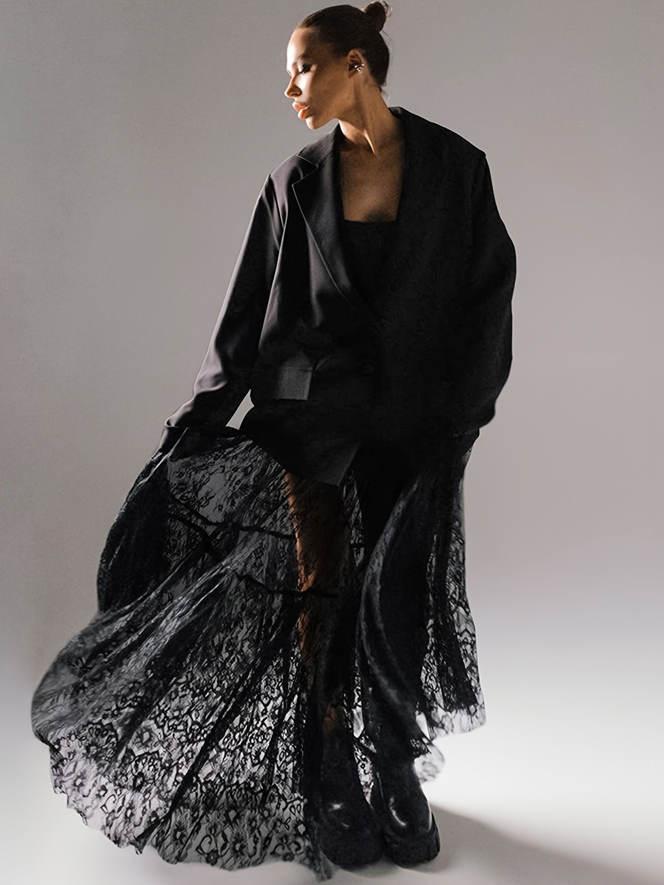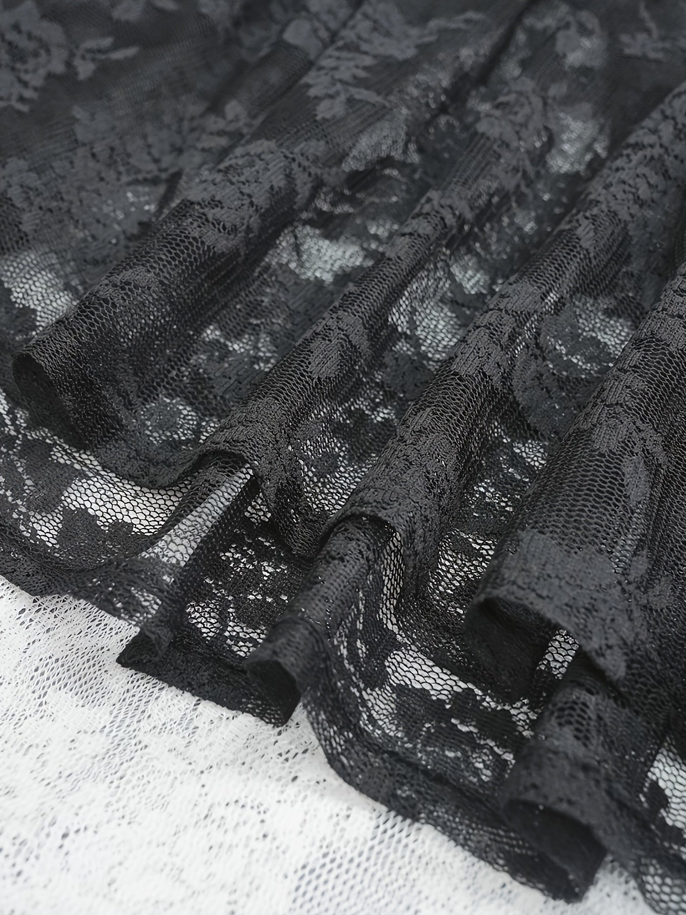 Plus Size Women's Lace Midi Dress Black Red Floral Lightweight Semi-Sheer Elegant Evening Formal
