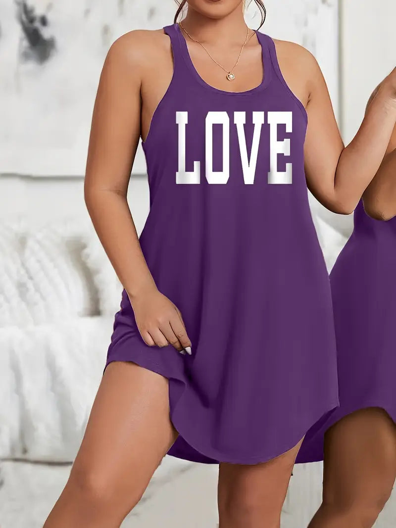 Plus Size Women's Maroon Love Letter Print Sleeveless Sleepshirt Nightgown Lounge Dress