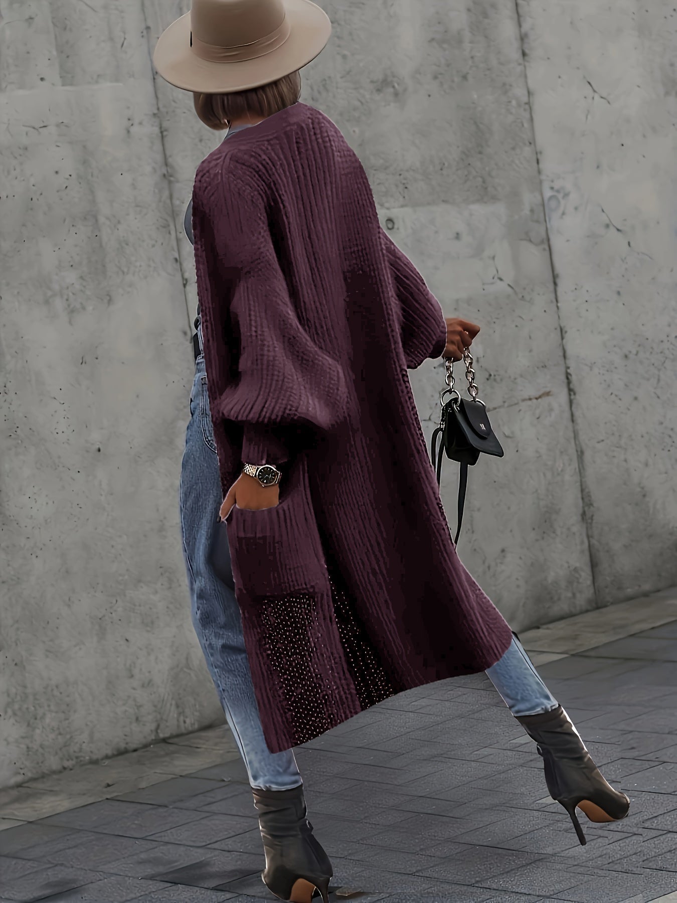 Plus Size Women's Rib Knit Open Front Longline Cardigan Gray