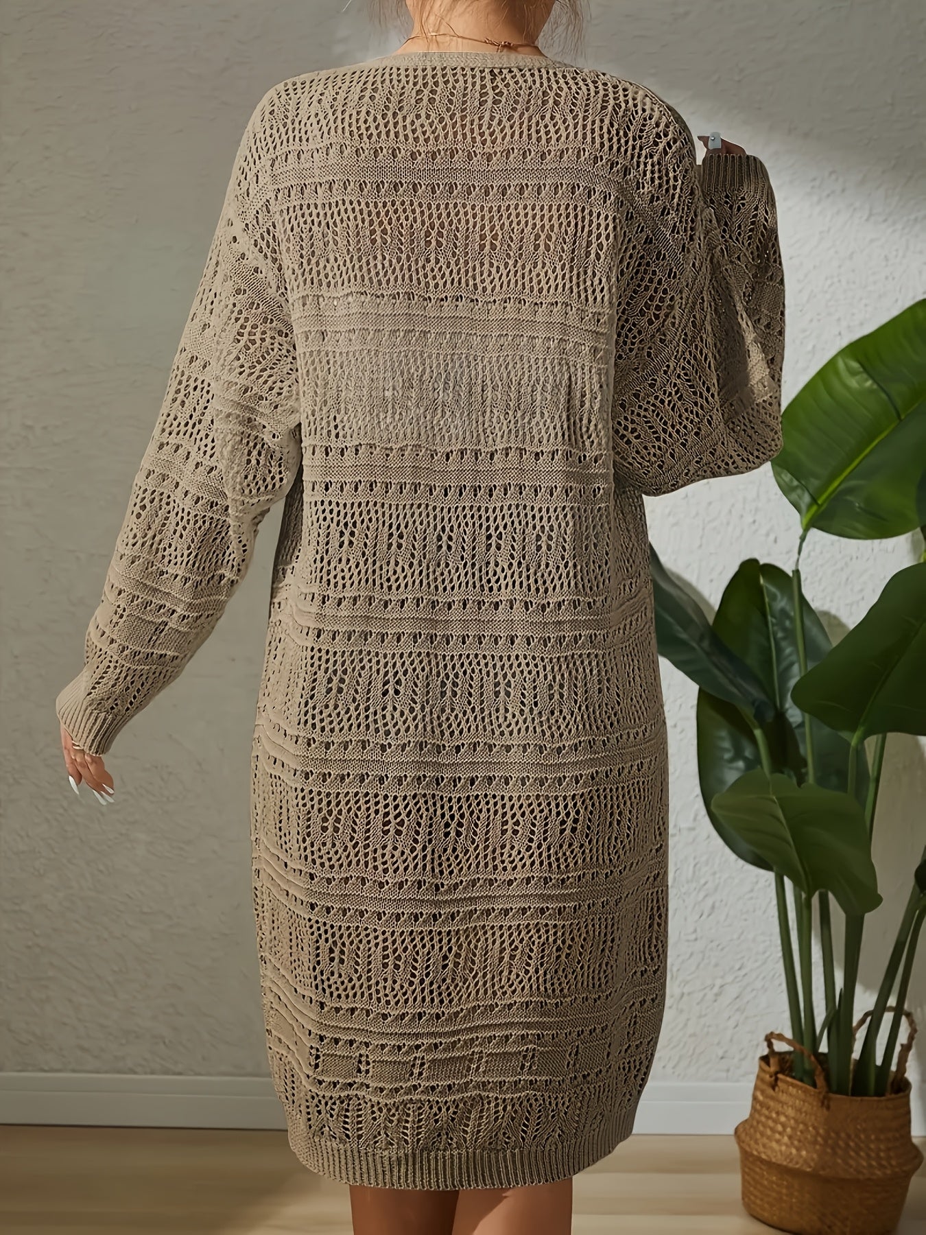 Plus Size Women's Semi-Sheer Crochet Beach Cardigan Lightweight Lace Cover-Up