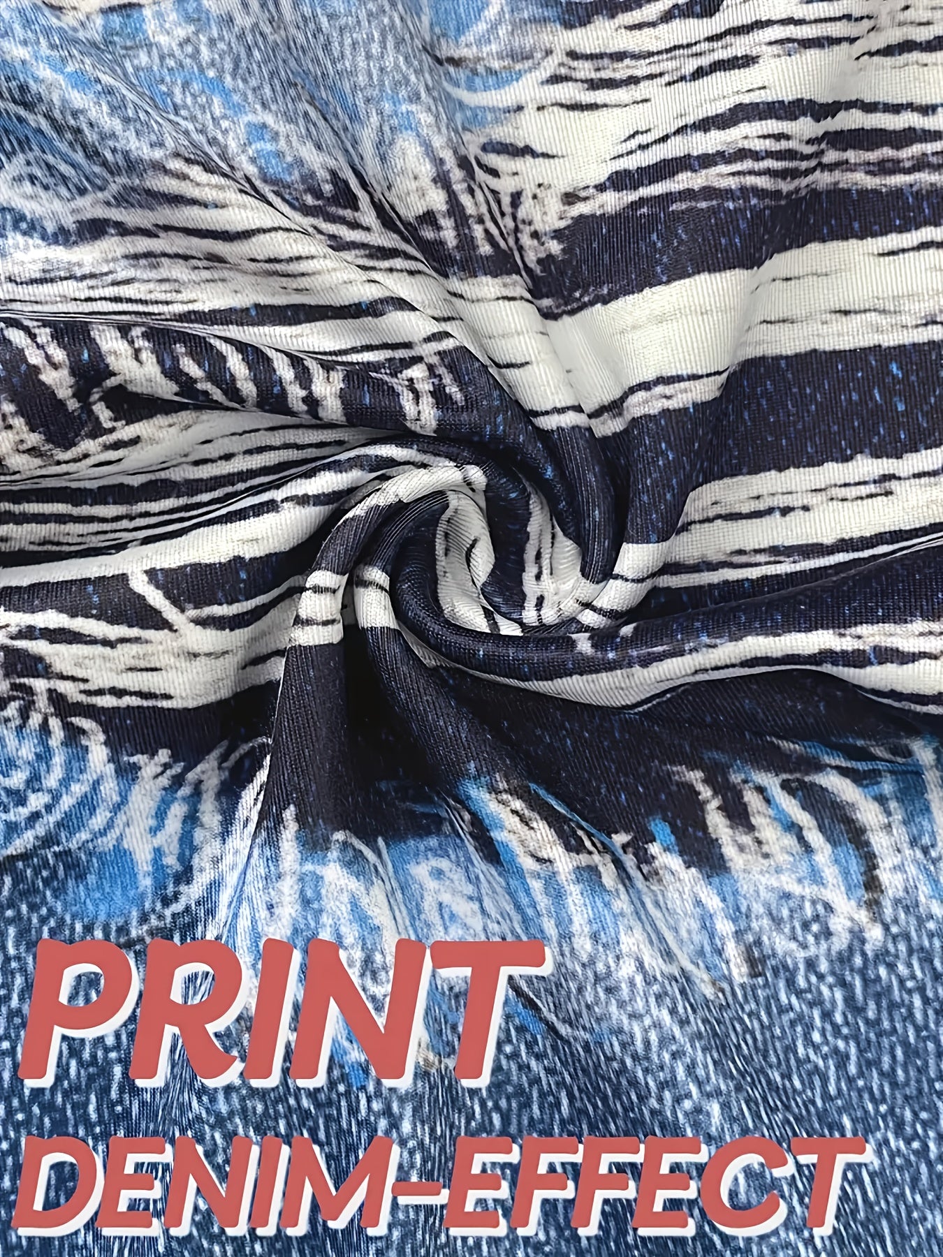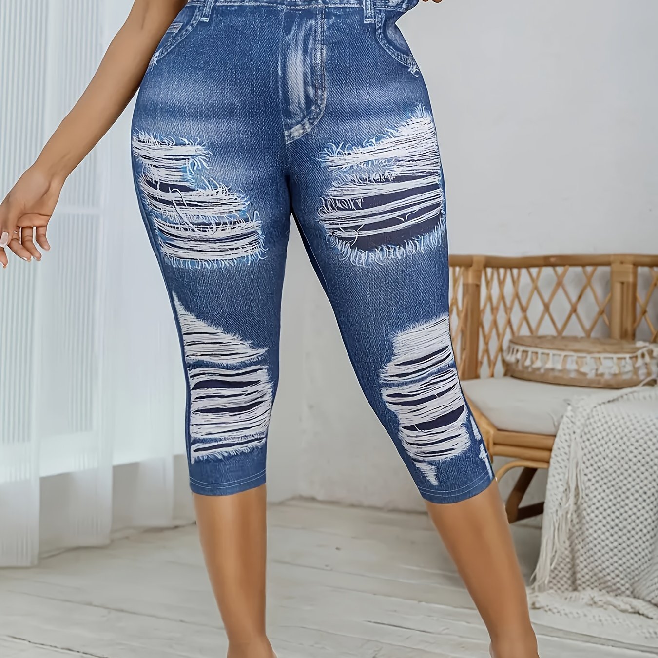 Plus Size Women’s Stretch Capri Leggings Ripped Print High Waist