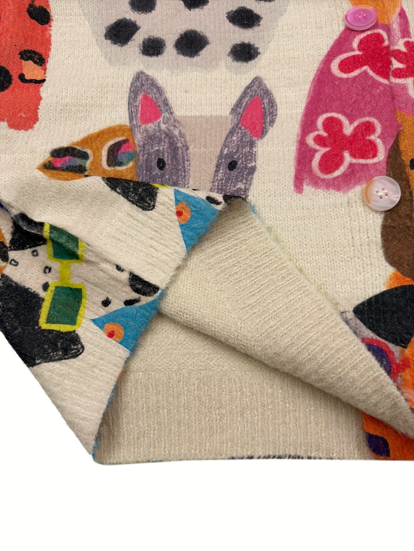 Plus Size Women's V-Neck Long Sleeve Cardigan Knit Sweater With Dog Print