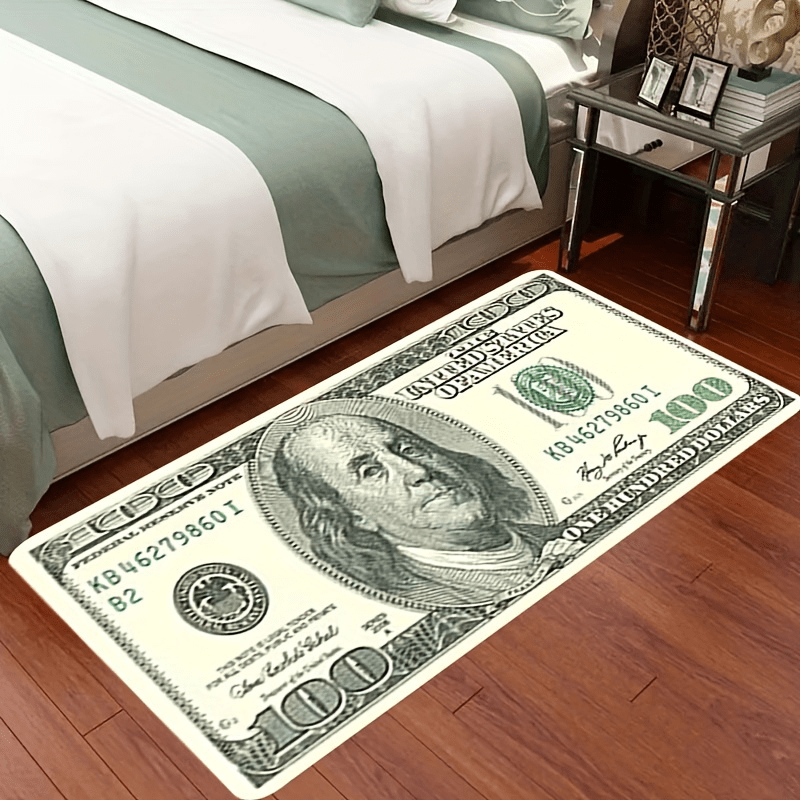 Polyester 3D Dollar Bill Carpet with Foam Backing for Living Room Bedroom Kids
