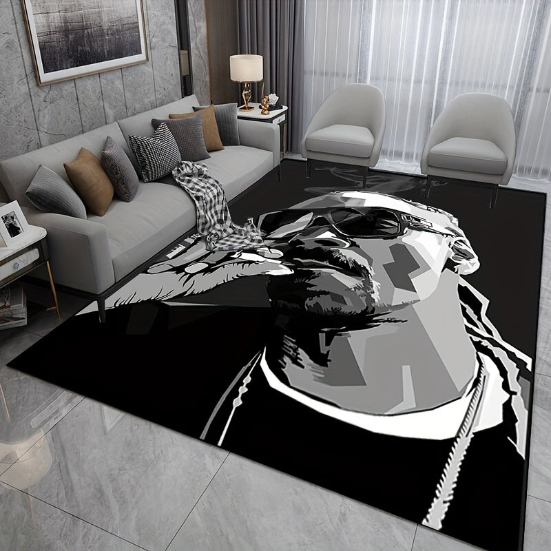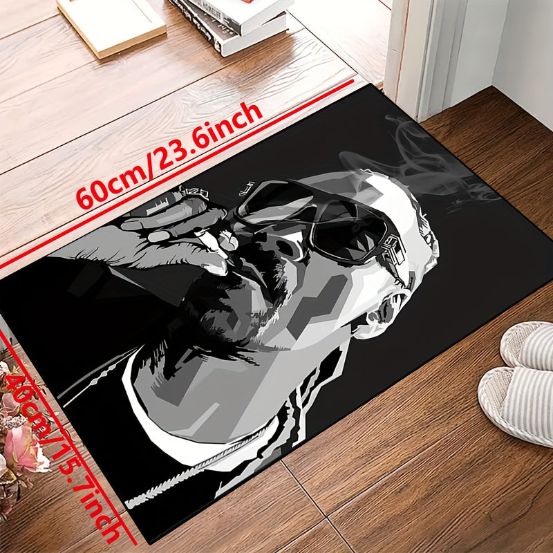 Polyester Area Rug with Man in Glasses Art, Easy to Clean, Slip-Resistant Indoor Outdoor Mat