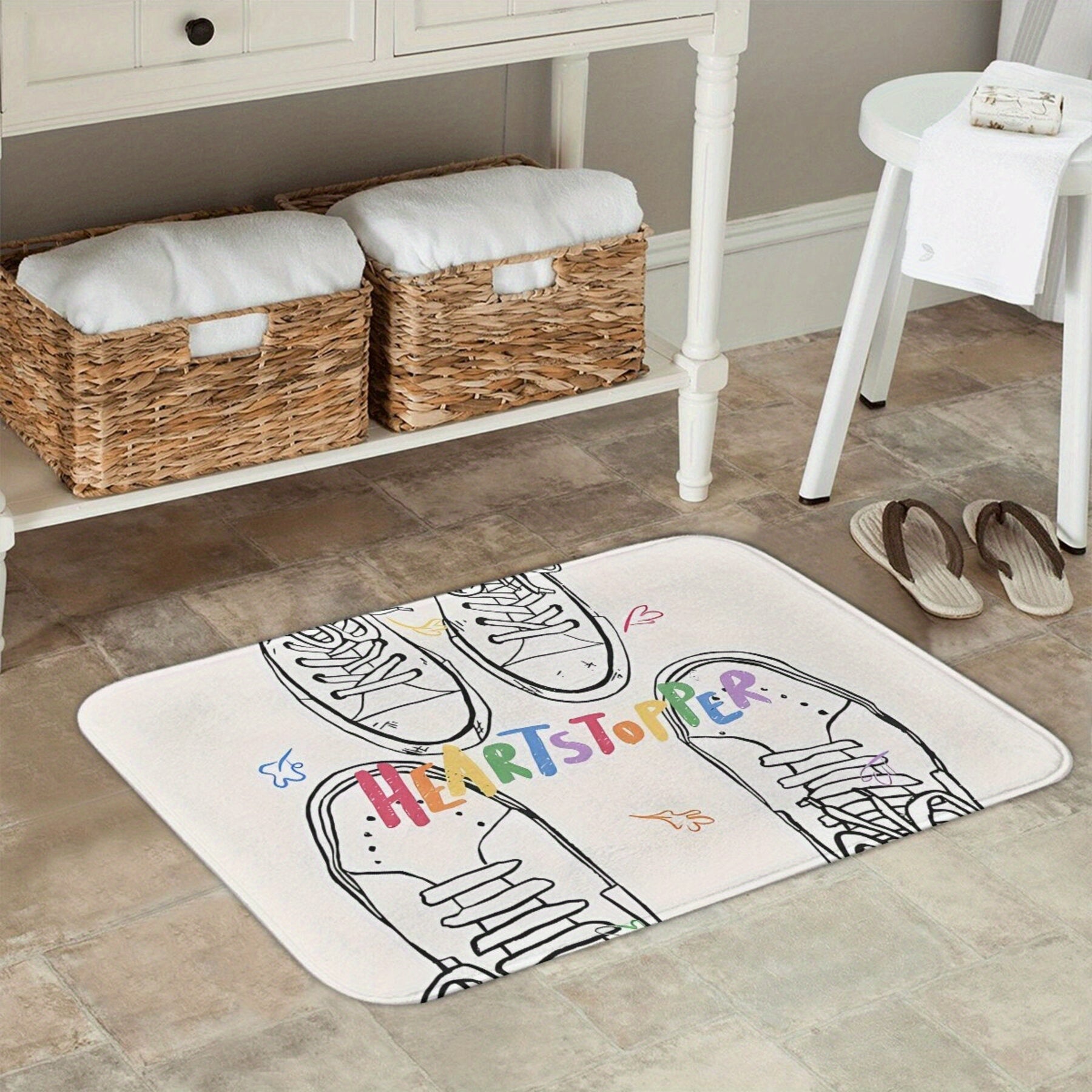 Polyester Non-Slip Doormat with Heartstopper Nick and Charlie Shoes Design, Machine Washable, Entryway Bedroom Balcony Carpet