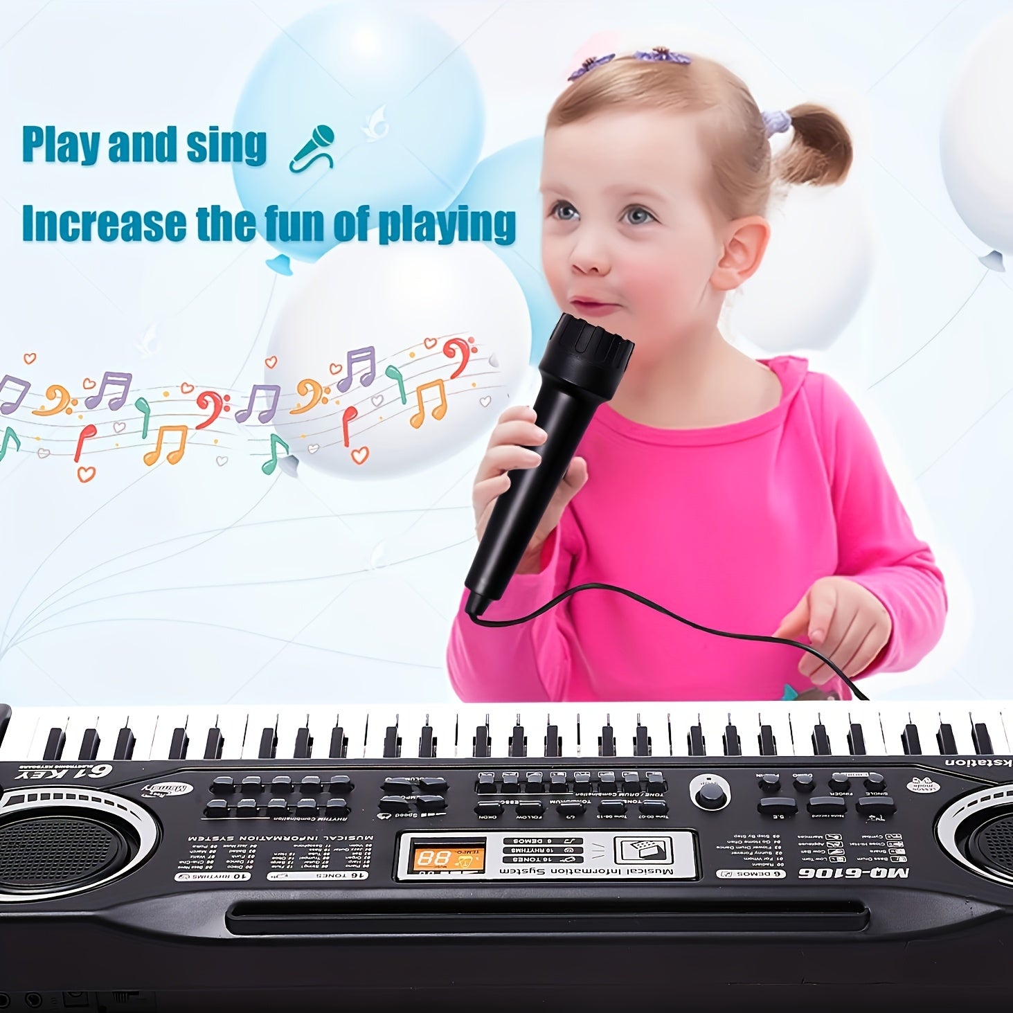 Black 61-Key Digital Piano Keyboard with Microphone Battery and USB Power