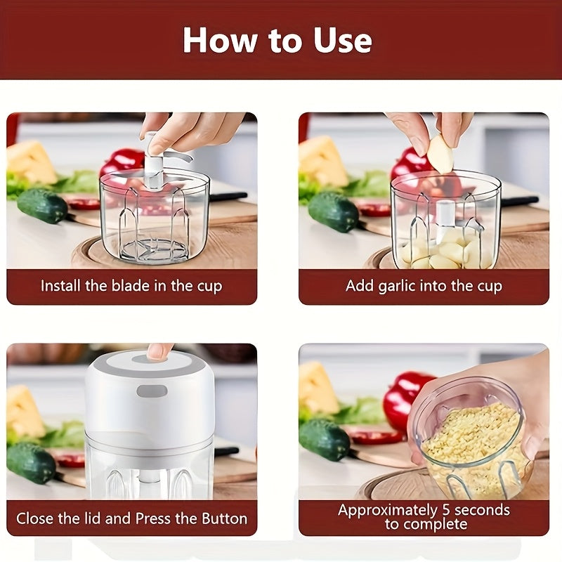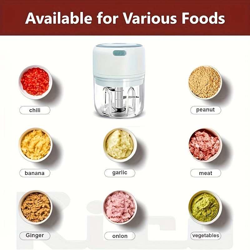 Electric garlic chopper 250ml wireless USB rechargeable vegetable fruit meat cutter