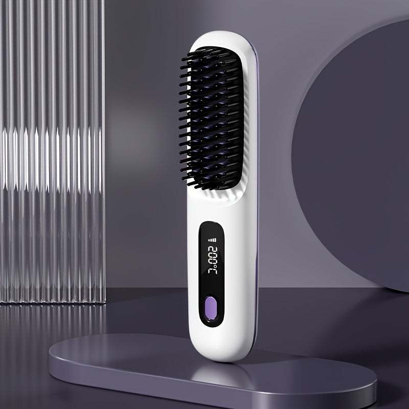 Portable straight hair brush with 3 temperature settings LED display USB charging 2000mAh lithium battery