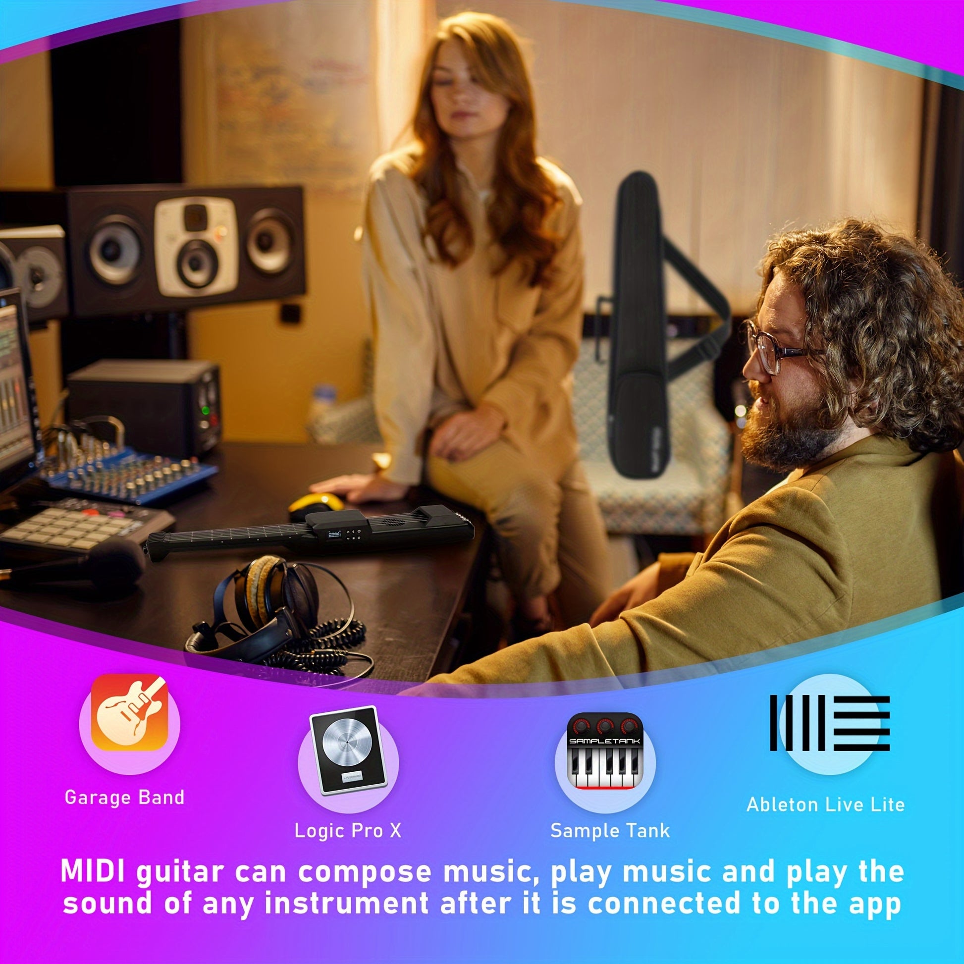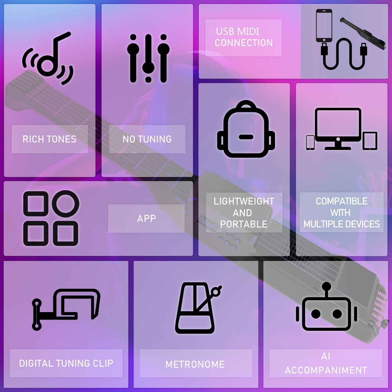 Portable Smart Acoustic Electric Guitar with AI LCD Screen, USB Charging, Includes Strap and Case