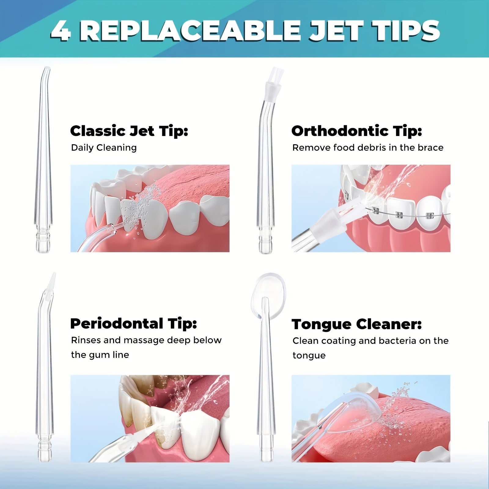 Portable Water Flosser with 4 Nozzles USB Rechargeable Multiple Modes for Oral Hygiene