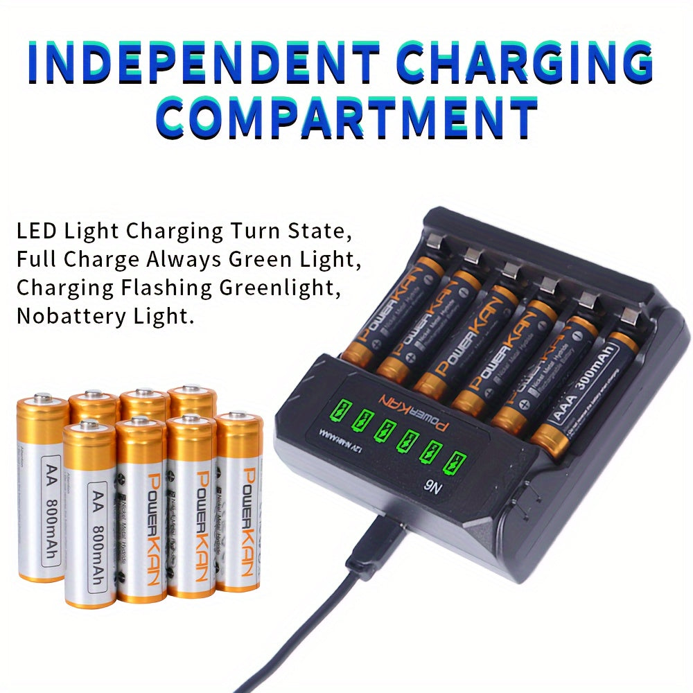 Rechargeable NiMH AA AAA Battery Set with Fast Charger and USB Indicator