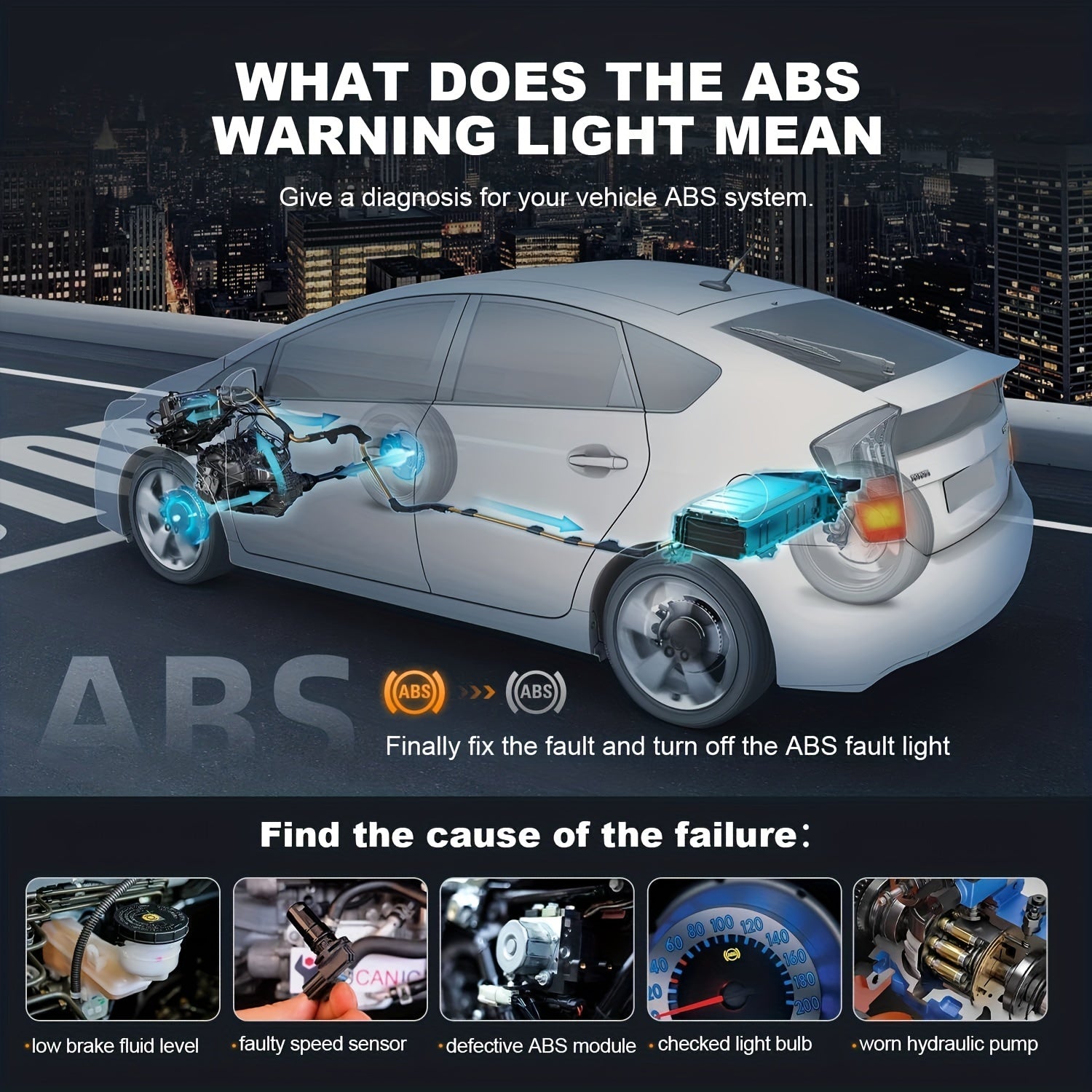 Pro OBD2 Scanner Car Diagnostic Tool ABS SRS Transmission Engine Code Reader