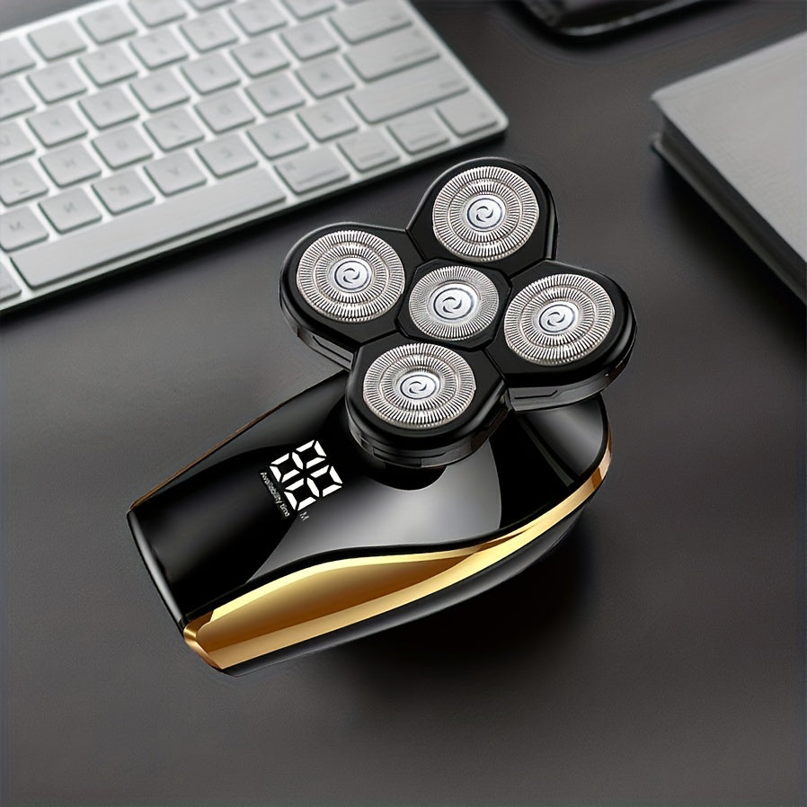 Cordless Bald Head Shaver 5 Rotary Blades LED Display Wet Dry Rechargeable Travel-Friendly