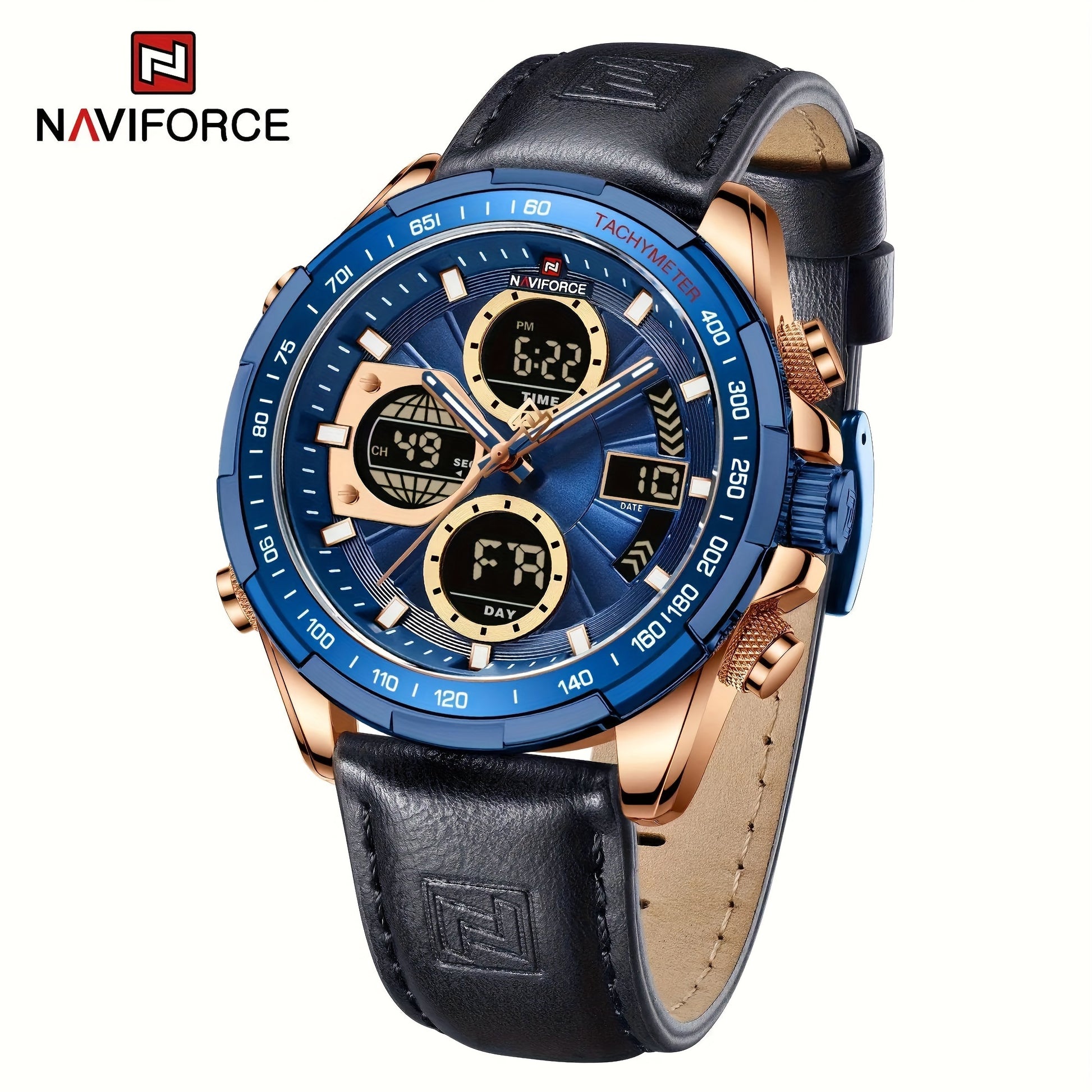 Men's Quartz Watch with Multi-Functional Features and Genuine Leather Strap