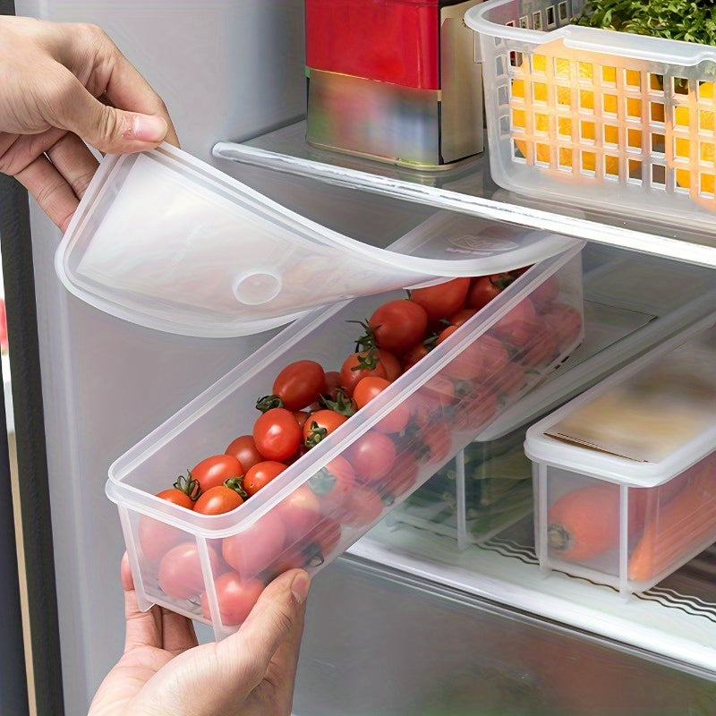 Rectangular Noodle Storage Box with Lid Reusable Plastic Container for Refrigerator Organization