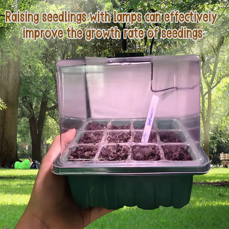 Rustic Seed Starter Kit with Adjustable Humidity USB Grow Light 12-Cell Propagator