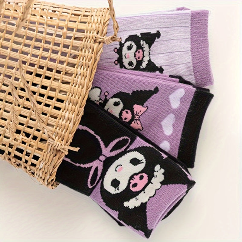 Teen Purple Knit Socks with Love Bow Pattern