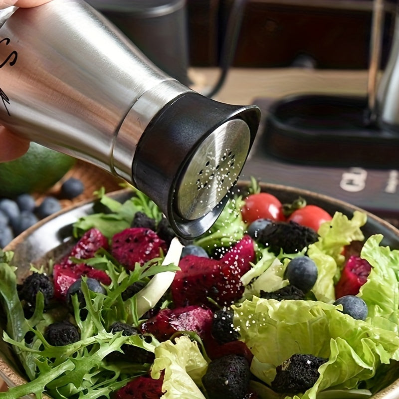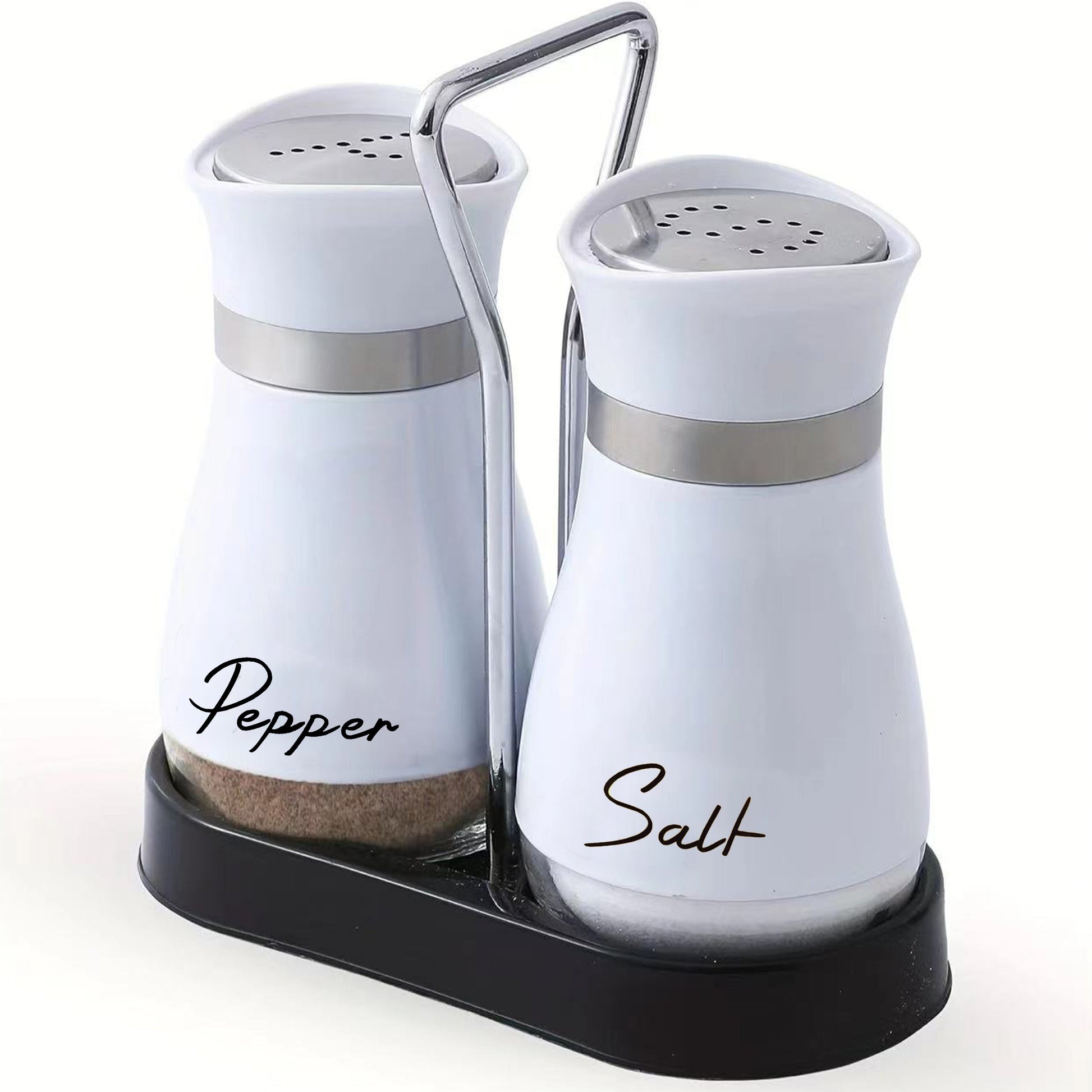 Set of 2 Glass Salt and Pepper Shakers with Holder, 4 oz Refillable Stainless Steel Lids