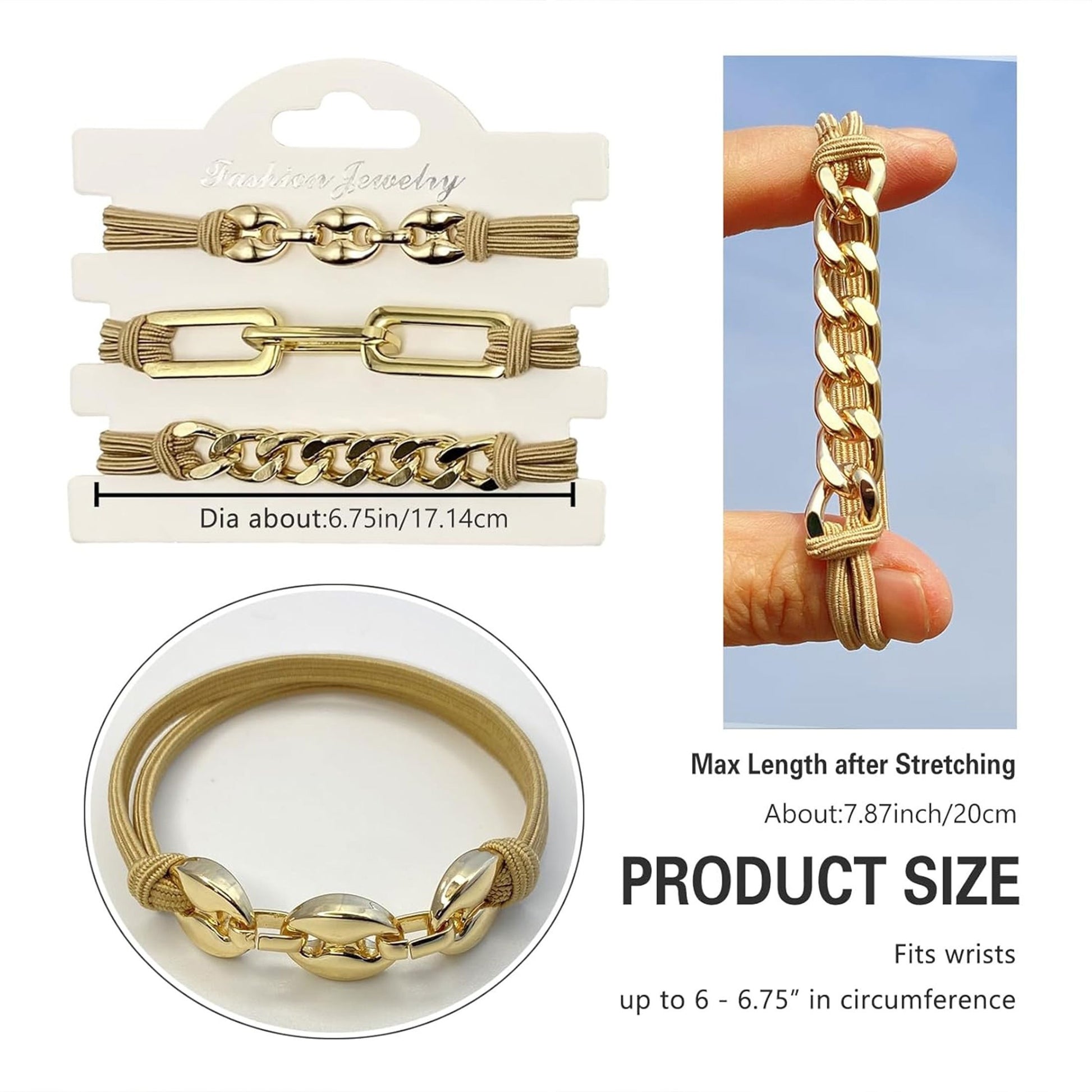 Set of 3 Gold Hair Ties Elastic Ponytail Holders for Women and Girls