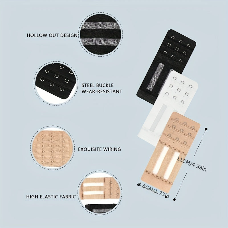 Set of 3 Women's Adjustable Bra Extenders with Elastic Knit Fabric