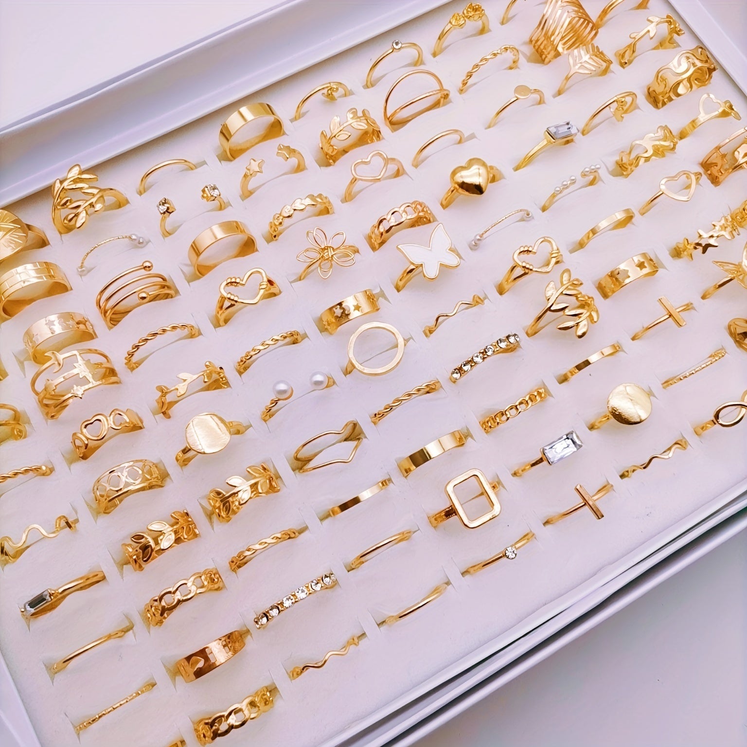 Set of 37 Y2K Boho Chic Rings for Women with Butterfly Designs for Weddings and Parties