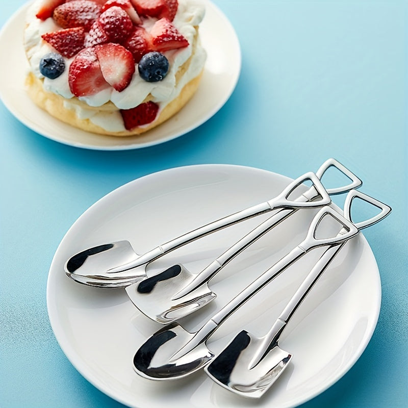 Set of 4 Stainless Steel Dessert Spoons for Fruit and Dessert Scooping
