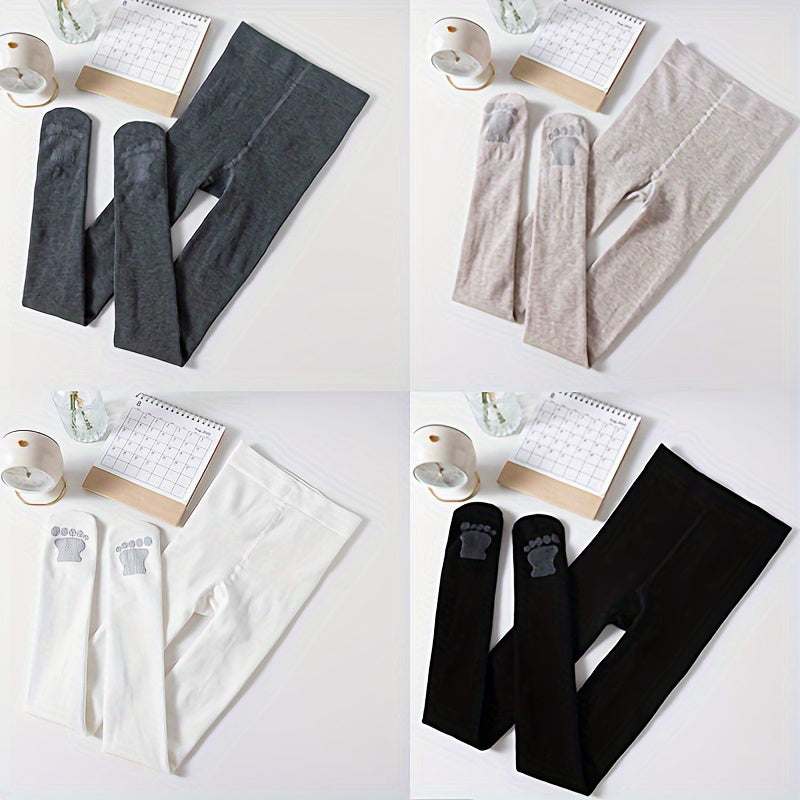 Set of 4 Girls' Vertical Striped Knit Leggings with Feet All-Season Children