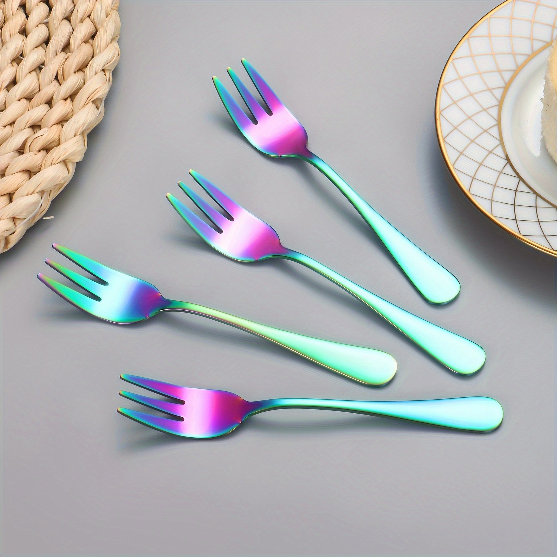 Set of 4 Stainless Steel Dessert Forks for Fruit Cake Snacks and Salad