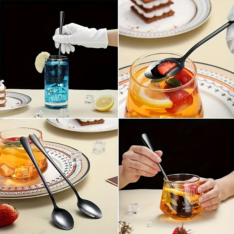 Set of 6 Long-Handled Stainless Steel Iced Tea Spoons for Cocktails and Coffee