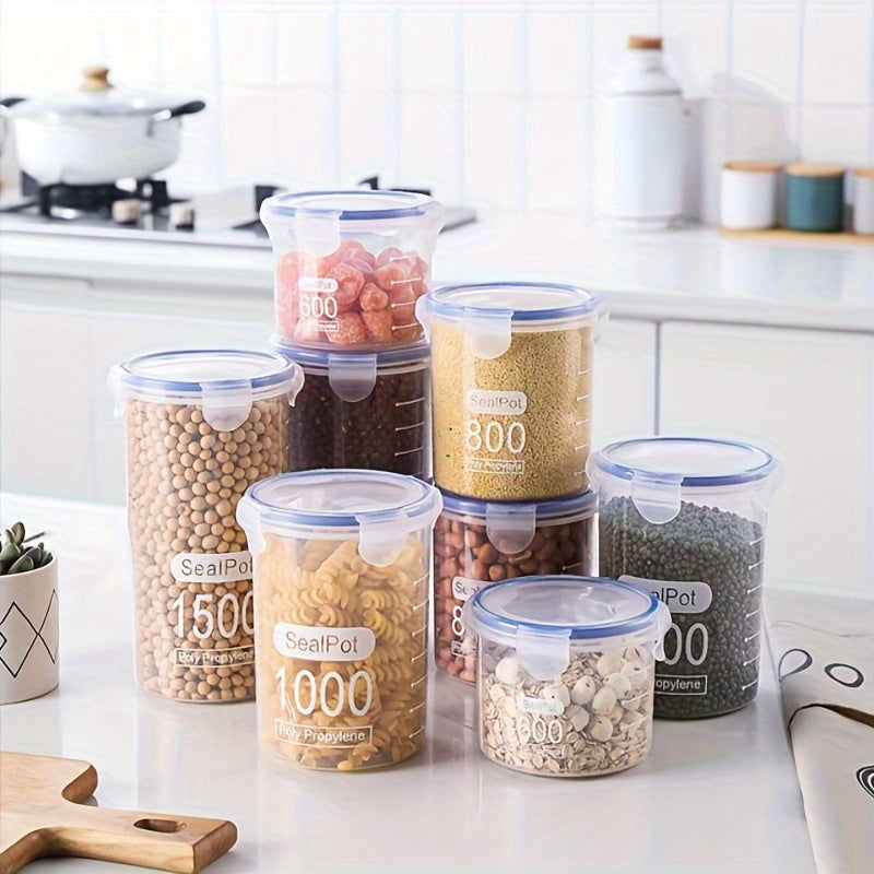 Set of 6 Round Plastic Food Storage Containers with Latch Lids Microwave Safe BPA-Free