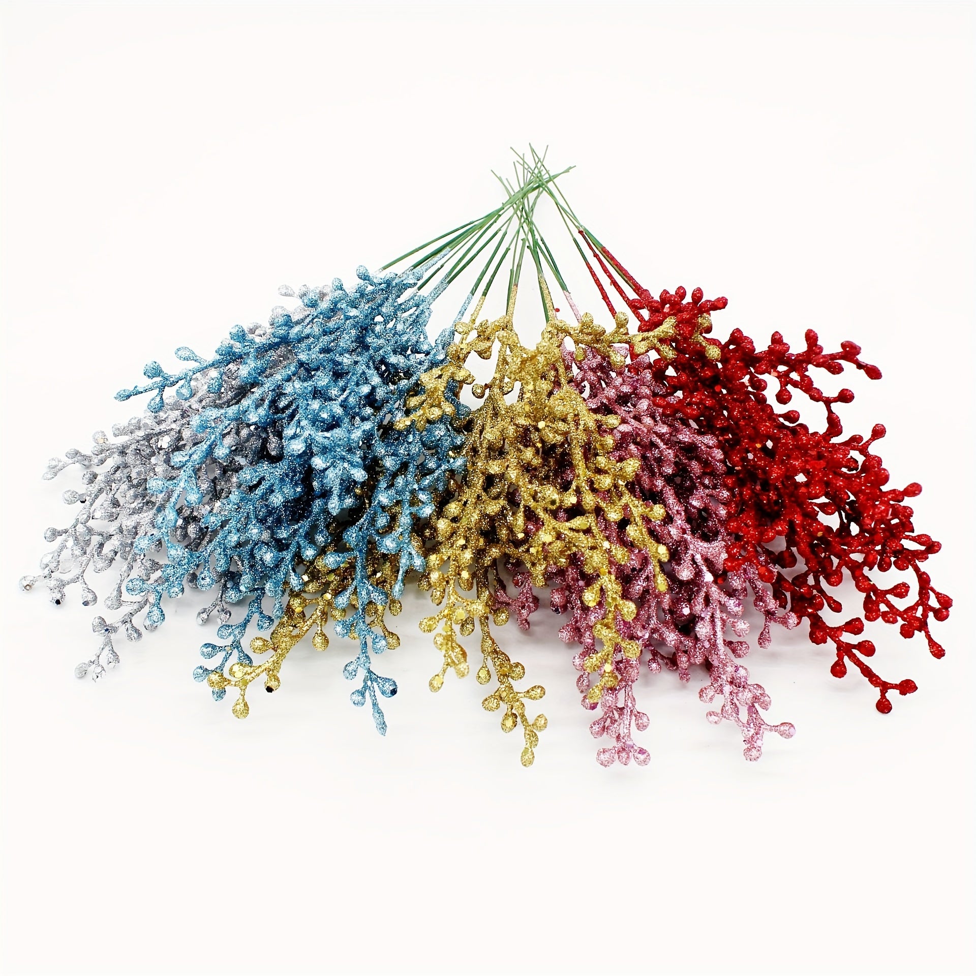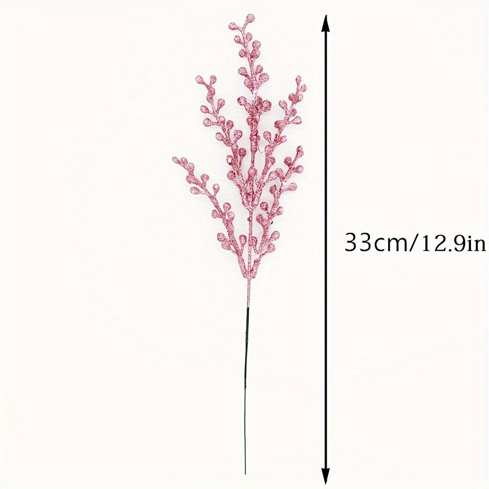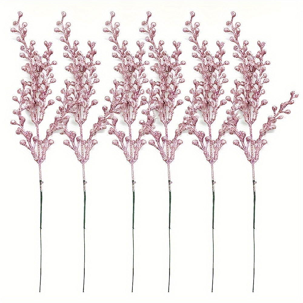 Set of 6 Sparkling Christmas Decorative Gifts with Gold Pink Glitter Berries for Holiday Decor