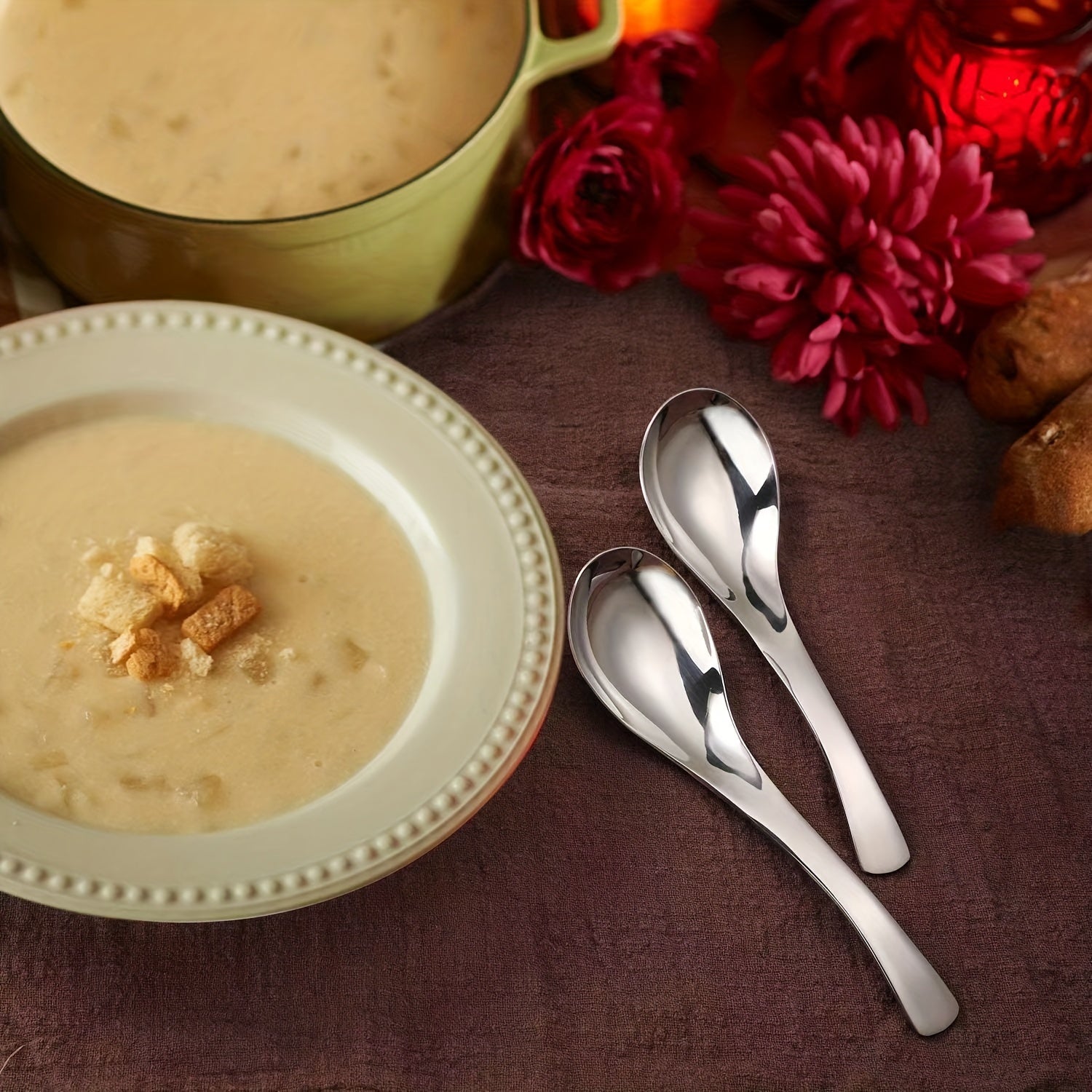 Set of 6 Heavyweight Stainless Steel Soup Spoons Dishwasher Safe Classic Design