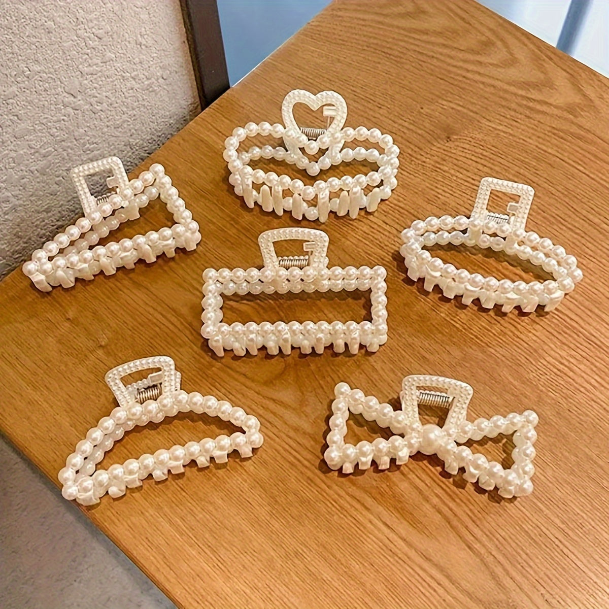 Set of 6 Women's Pearl Hair Clips Summer Hair Accessories Minimalist Plastic Small