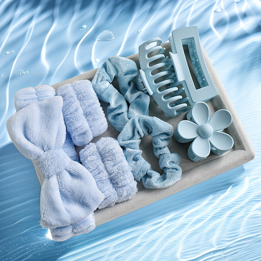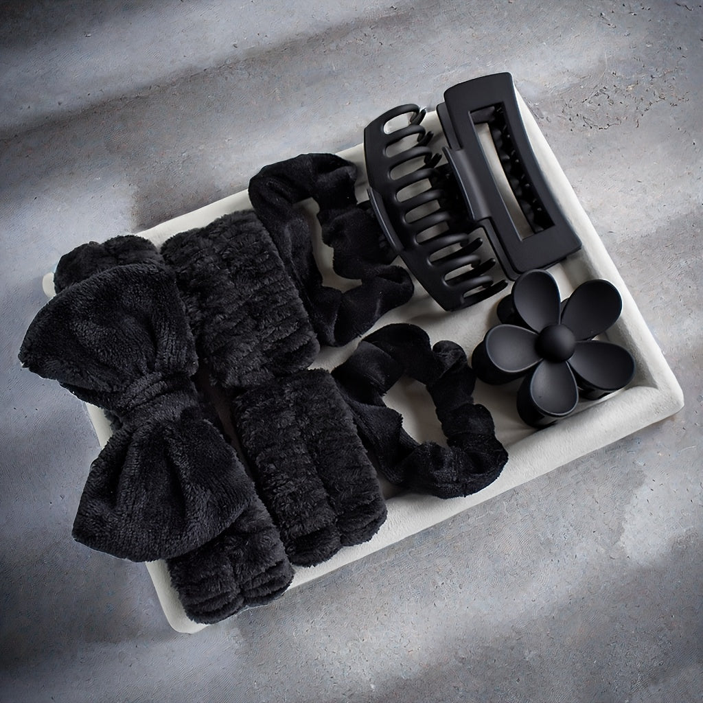 Set of 8 Women's Velvet Headbands and Clips with Flower and Frosted Plastic Grab Clips
