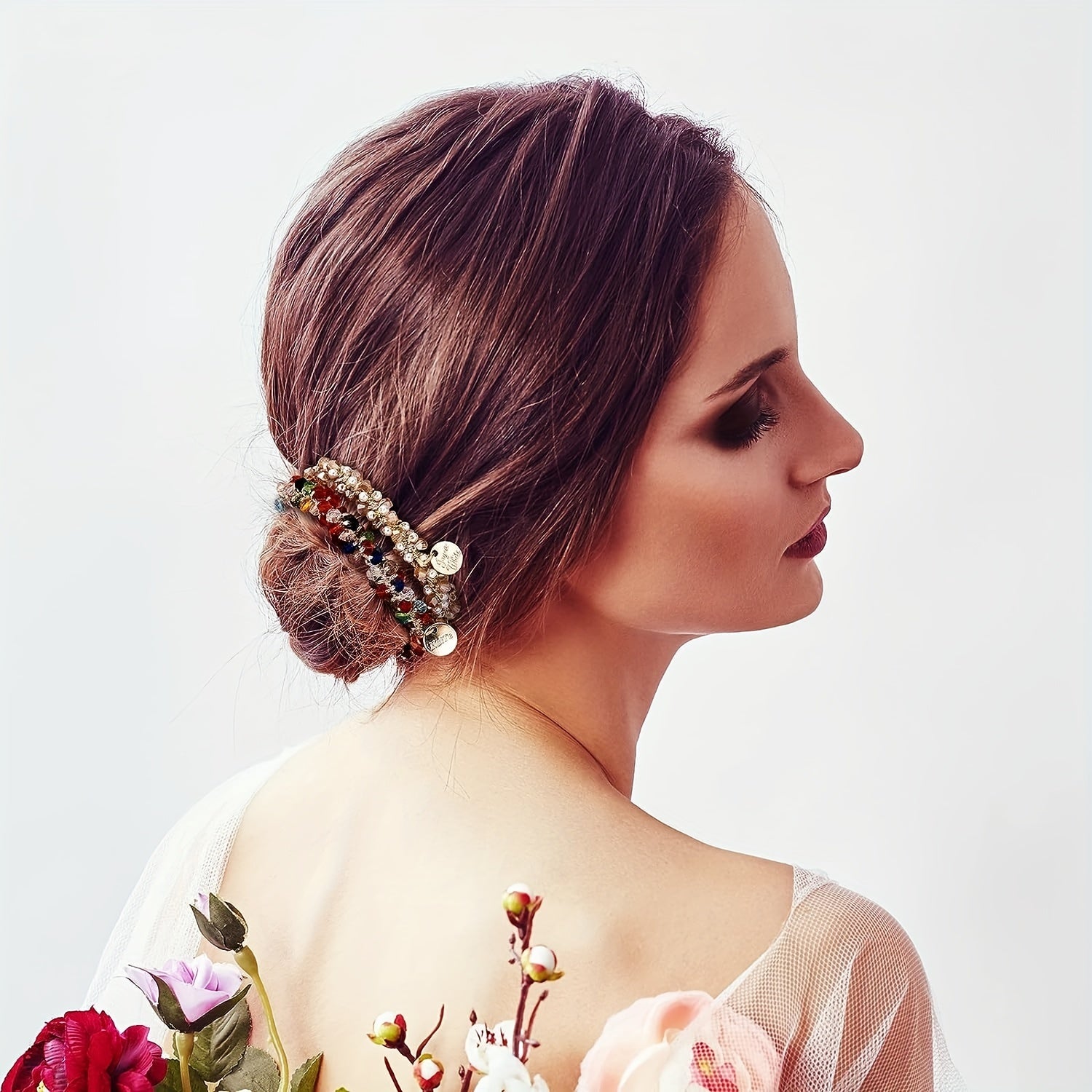 Set of 9 Crystal Beaded Elastic Hair Ties for Ponytails Boho Style Hair Accessories