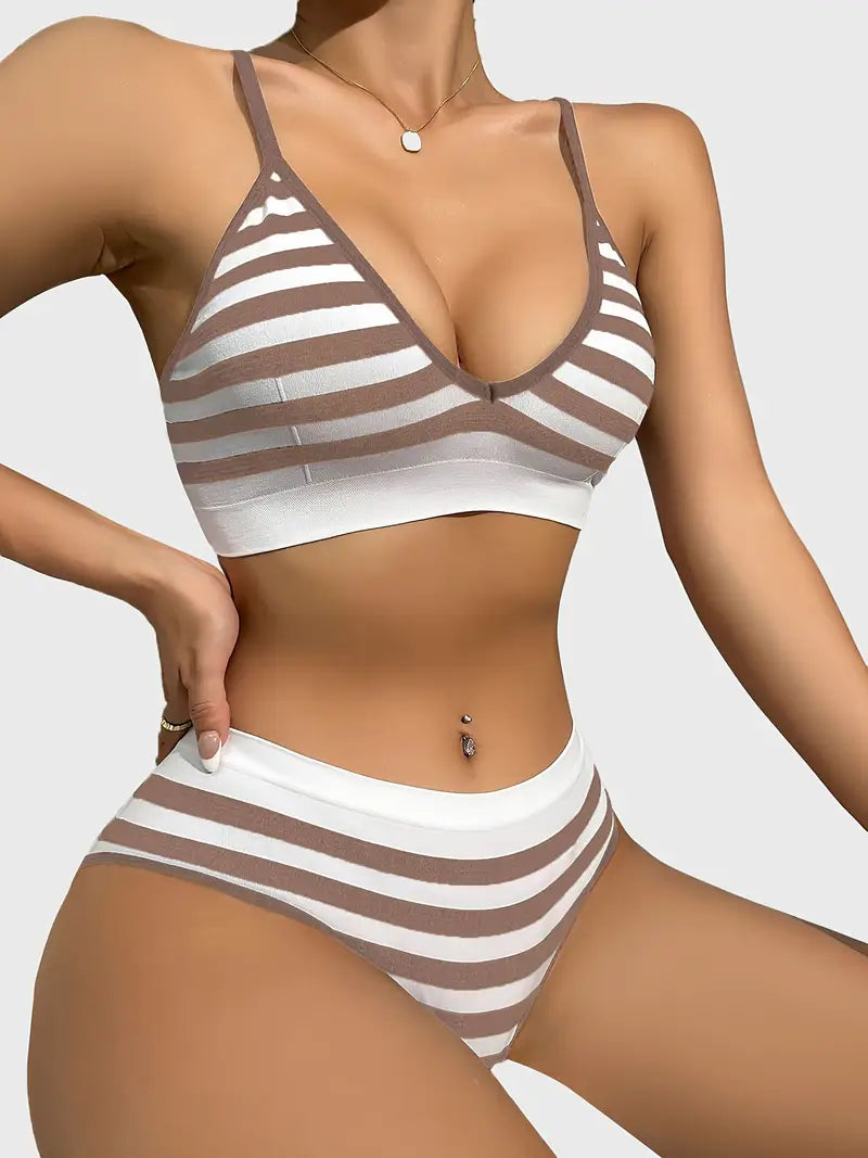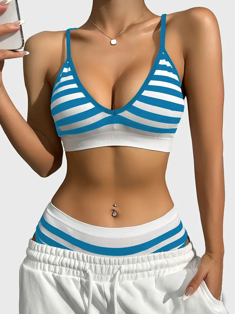 Women's Colorblock Striped Wireless Push-Up Bra and Elastic Panties Lingerie