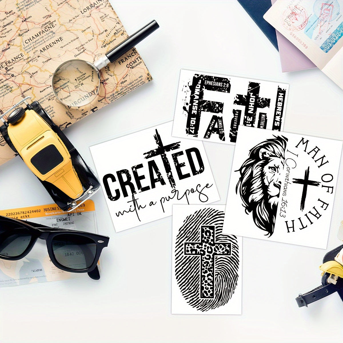 Set of Four UV DTF Cup Wrap Decals Religious Faith Stickers for Mugs and Bottles