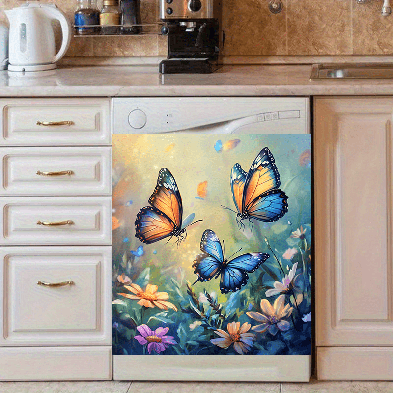 Iridescent Butterfly Dishwasher Magnet Waterproof PVC Floral Kitchen Decor