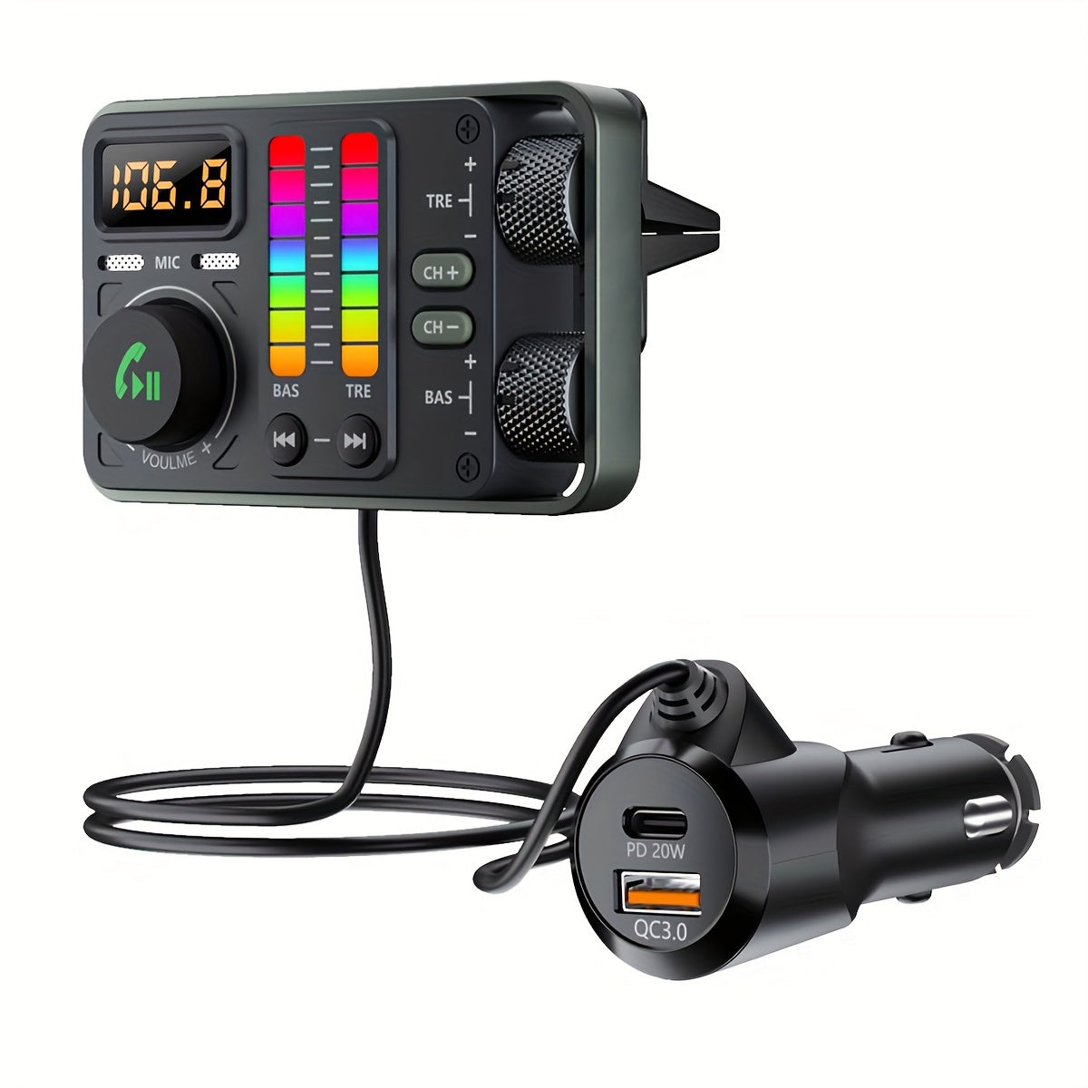 Wireless FM Transmitter with MP3 Player Fast Charging Hands-Free Calling Car Audio Adapter